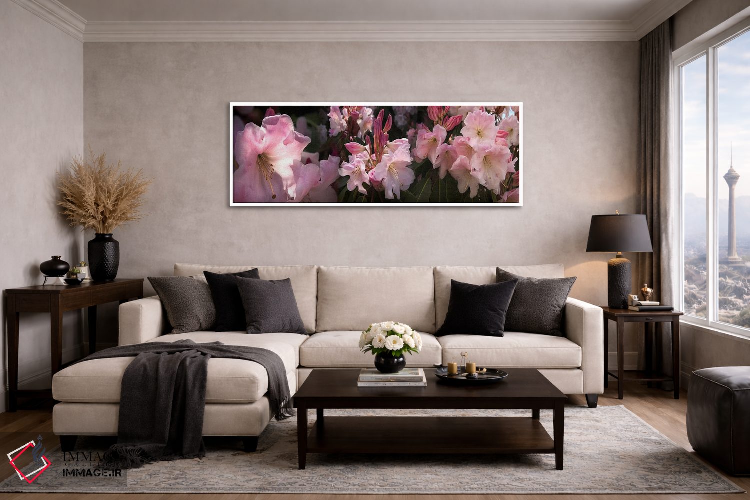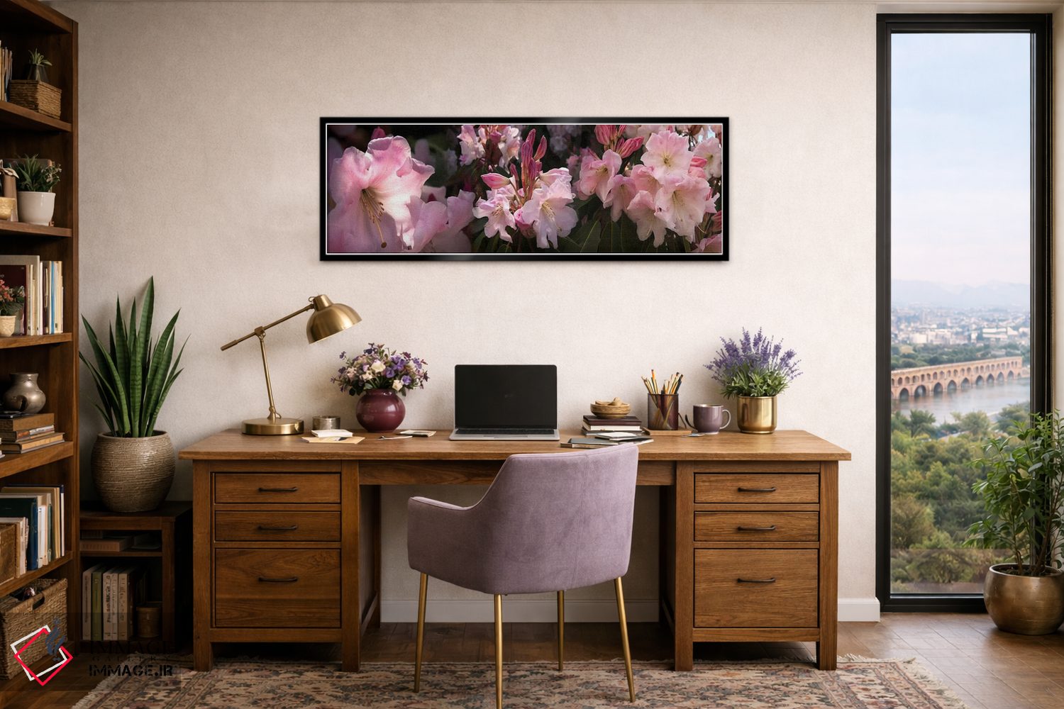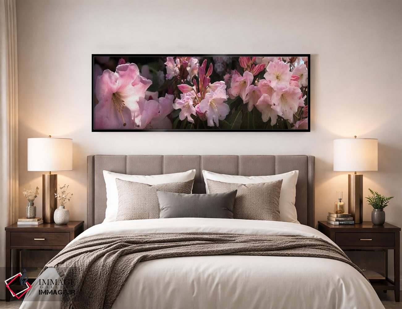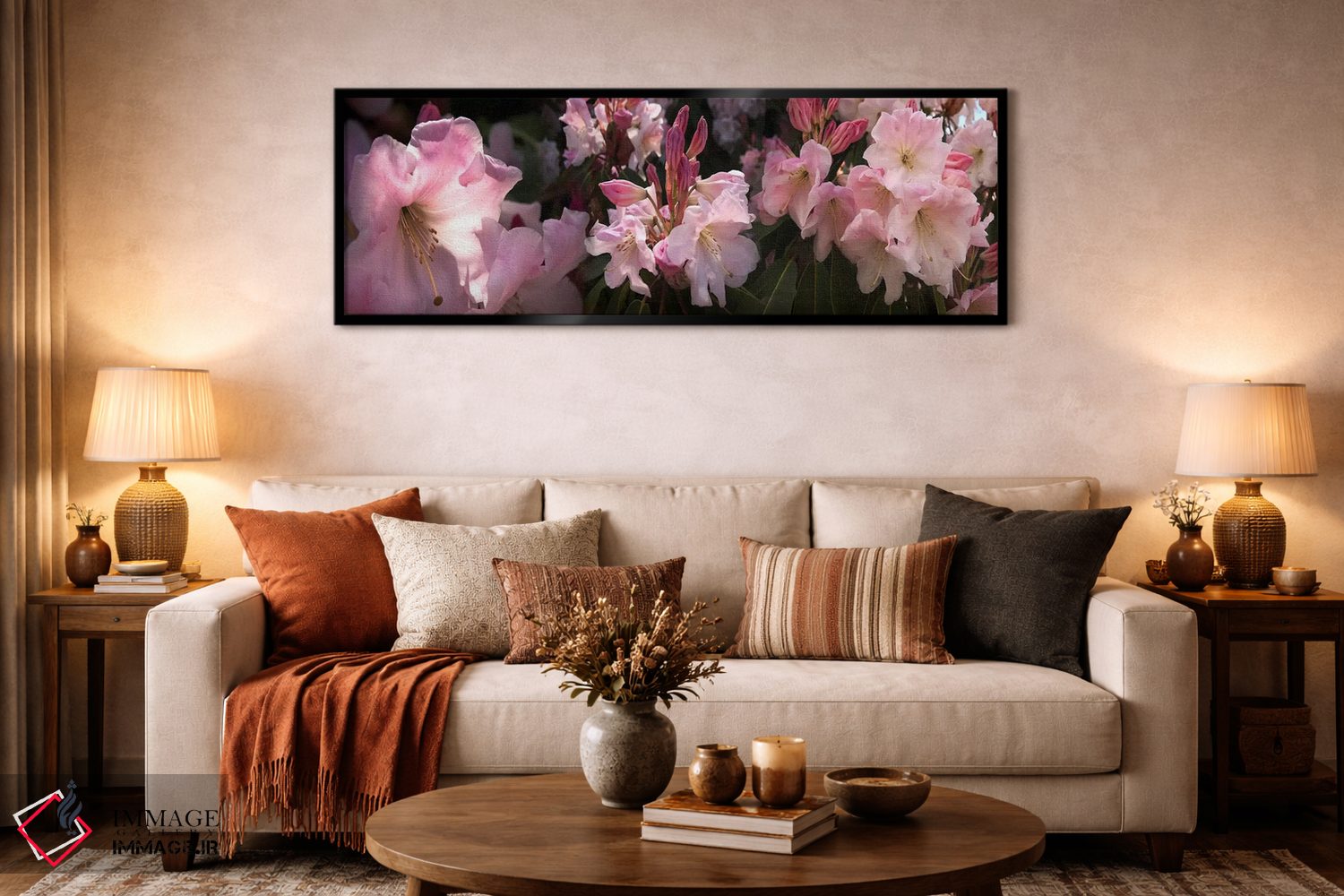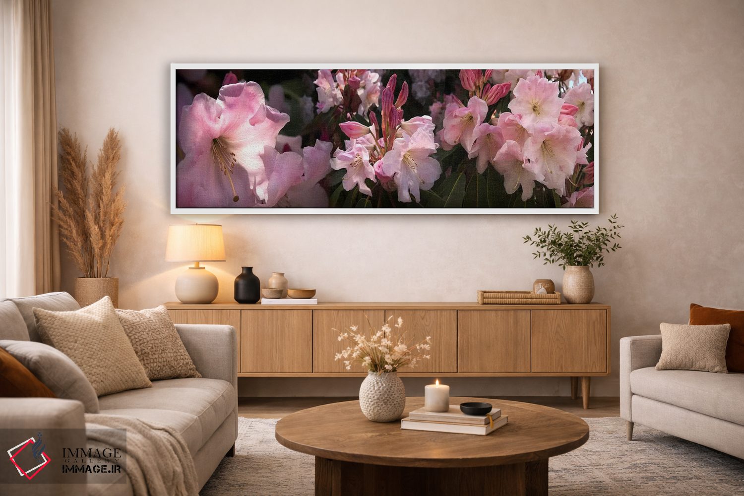 وقتی چیدمان را با دقت میچینید، «نزدیکبینی از گلهای رودودندرون صورتی» اثرِ «پانورامیک ایمجز (استودیو عکاسی عریض)» به چیدمان، عمق و وقار میدهد؛ برای فضاهایی که میخواهید مرکز توجه داشته باشند پیشنهاد میشود. برای هدیه دادن هم انتخابی محترمانه و امن است.