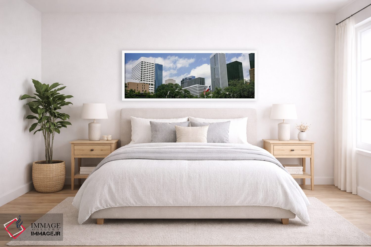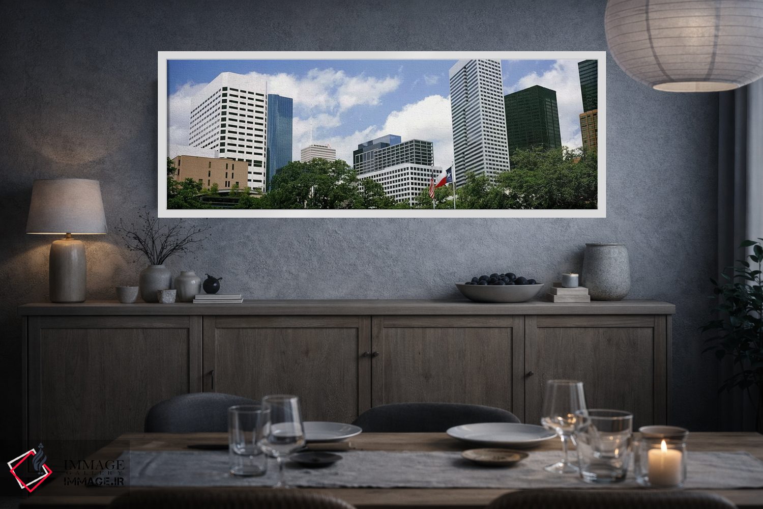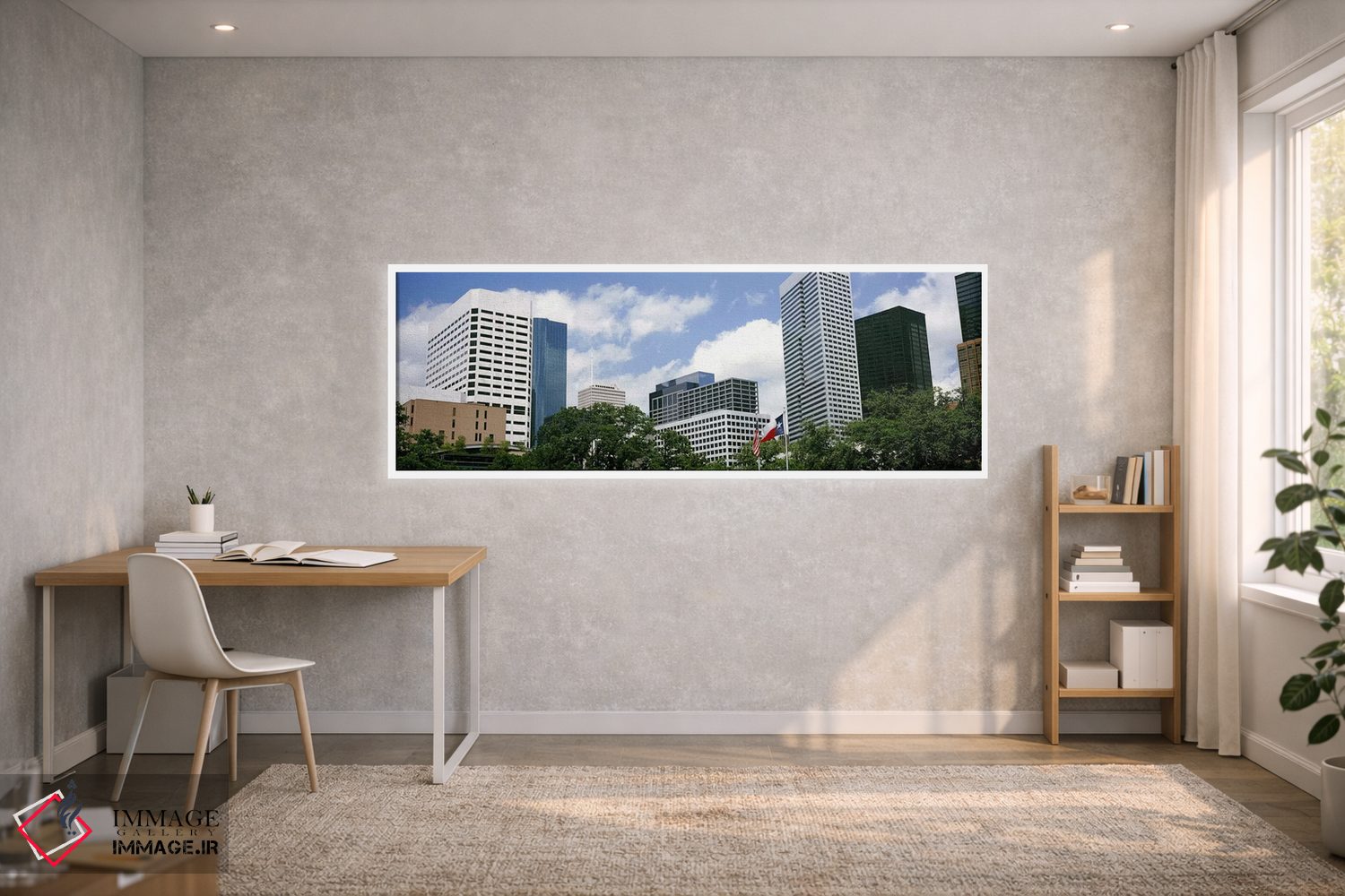 برای فضایی که میخواهید مرتبتر و حرفهایتر دیده شود، «آسمانخراشها در یک شهر، هیوستون، تگزاس، ایالات متحده آمریکا #2» اثرِ «پانورامیک ایمجز (استودیو عکاسی عریض)» اتاق را جمعوجورتر و مرتبتر نشان میدهد؛ برای اتاق کار و گوشهٔ مطالعه پیشنهاد میشود. اگر میخواهید یک اثر همیشه «بهروز» بماند، انتخاب خوبیست.