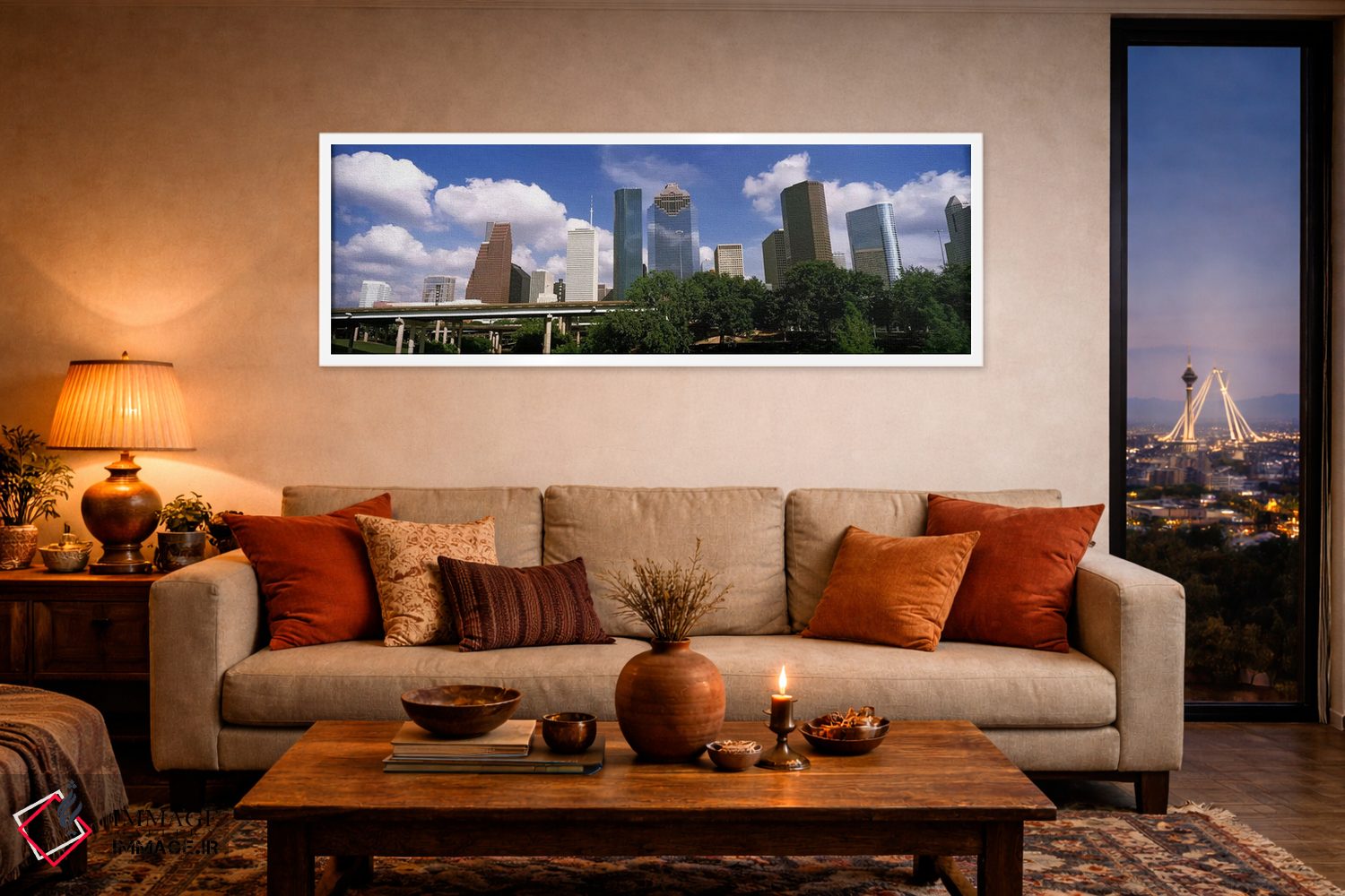 «نمای پایین از ساختمانها در یک شهر، برج وِج، ساختمان اکسونموبیل، ساختمان چورون، هیوستون، تگزاس، ایالات متحده آمریکا #3» اثرِ «پانورامیک ایمجز (استودیو عکاسی عریض)» انتخابیست برای زمانی که سلیقهٔ صاحبخانه را بیاغراق نشان میدهد؛ برای نشیمنهای صمیمی و پذیراییهای شیک انتخابی عالی است. جزئیاتش نزدیکِ کار هم ارزش نگاه دارد.