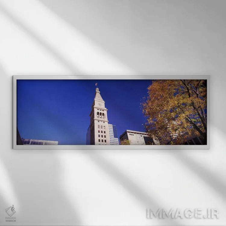 تابلو دکوراتیو نمای پایین از یک برج ساعت، دنور، کلرادو، ایالات متحده آ… اثر پانورامیک ایمجز