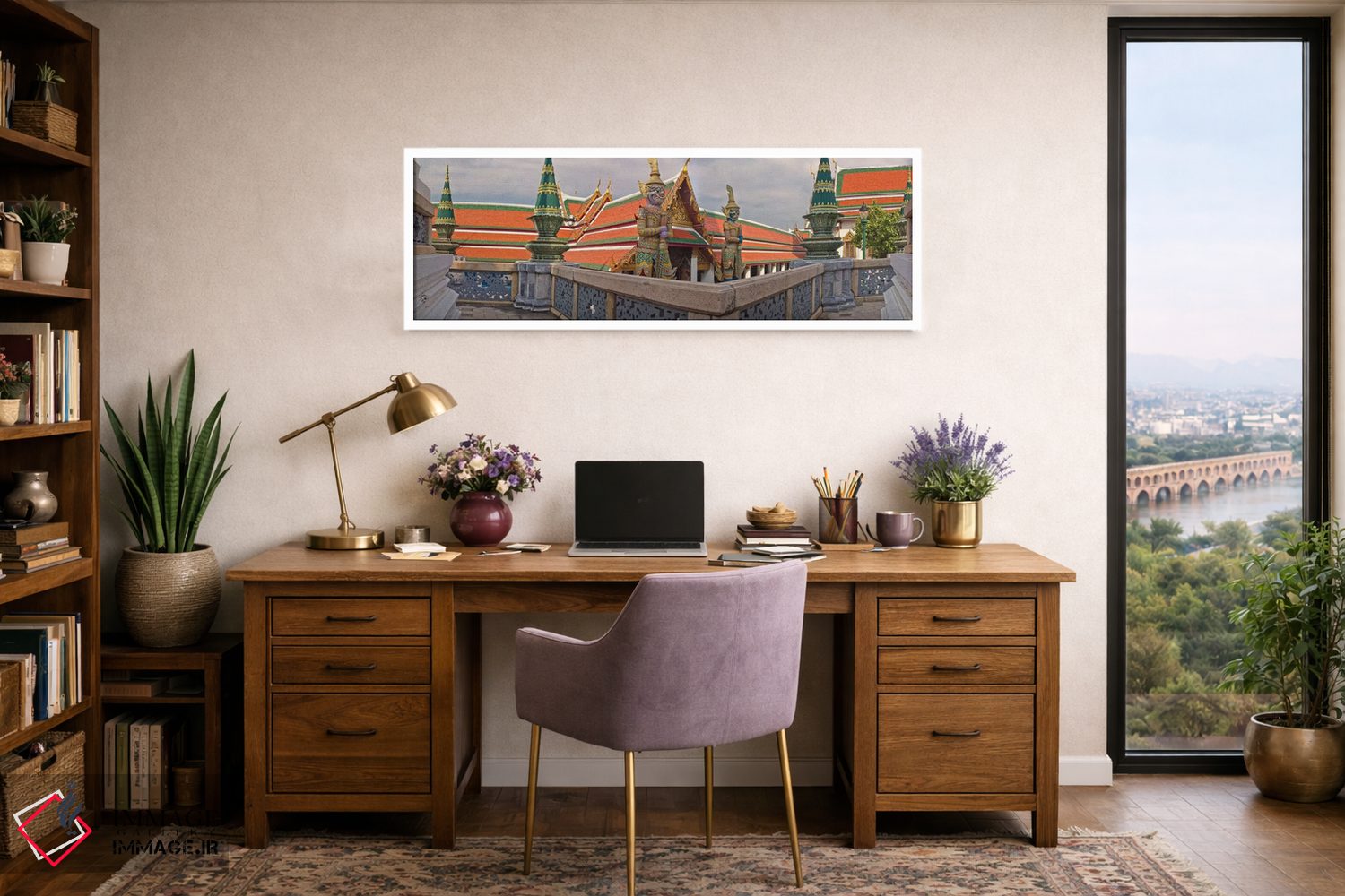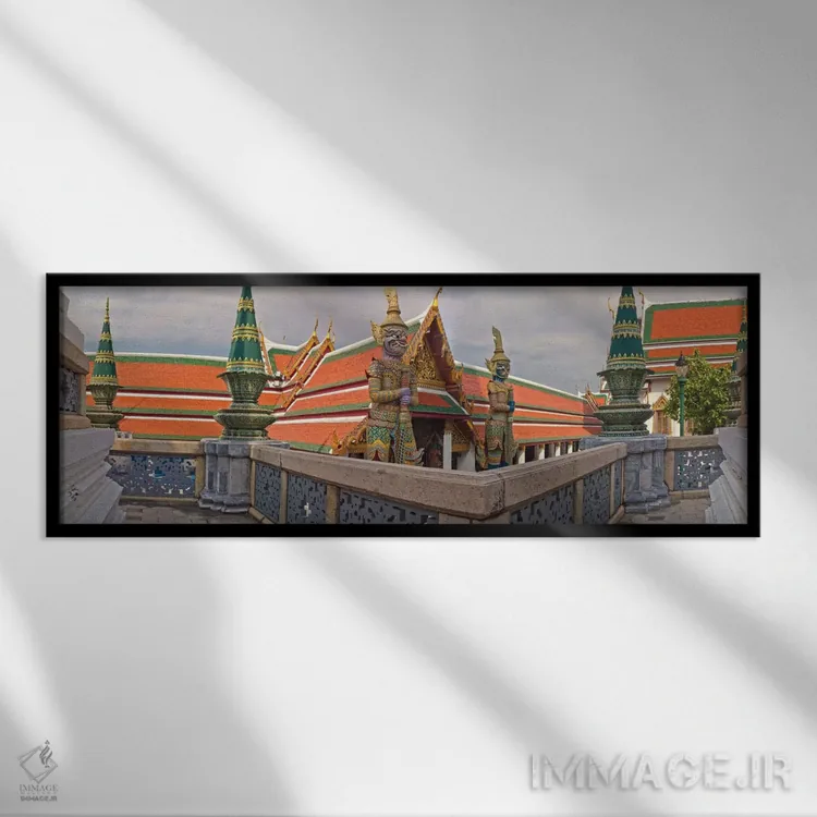 در یک جمله، «Thailand"—"کاخ بزرگ (فرا بوروم ماها راچا وانگ) مجموعهای از ساختمانها در قلب بانکوک، تایلند"» اثرِ «پانورامیک ایمجز (استودیو عکاسی عریض)» روی دیوار، تمیز و دقیق دیده میشود؛ برای کنار کتابخانه یا میز کار پیشنهاد میشود. هم از دور چشمگیر است و هم از نزدیک پرداخت دارد.