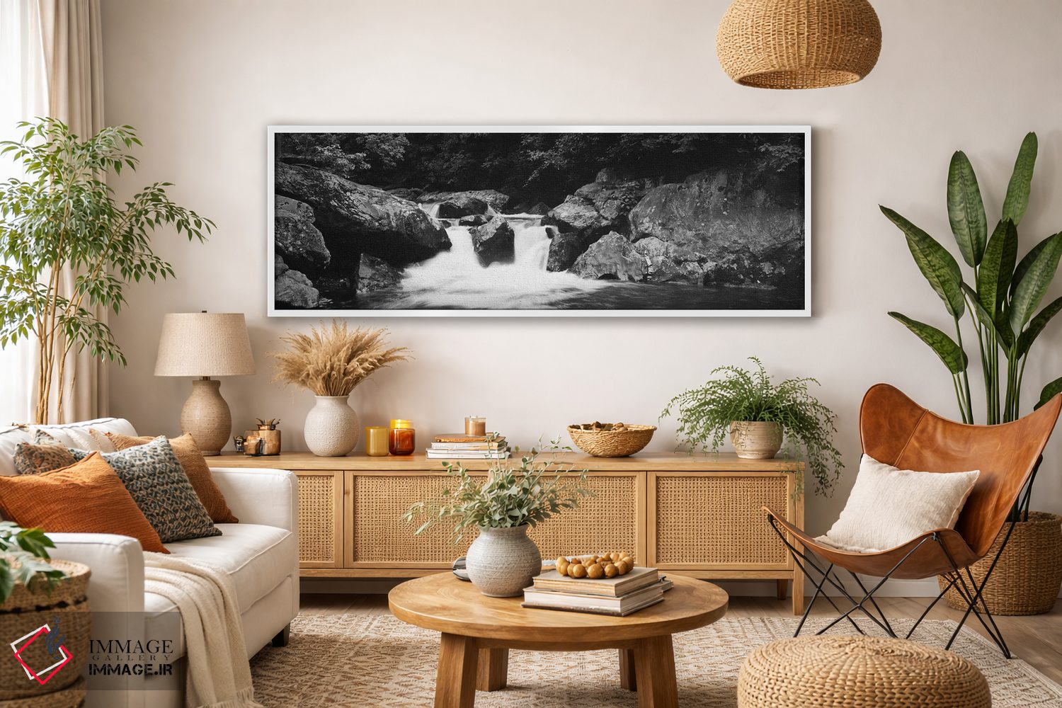 در «Tallulah River، Coleman River Scenic Area، Chattahoochee—Oconee National Forest، Georgia، USA"—"رودخانهای در یک جنگل، رودخانه تالولا، منطقه طبیعی رودخانه کولمن، جنگل ملی چاتهاتچی—اوکونی، جورجیا، ایالات متحده"»، اثرِ «پانورامیک ایمجز (استودیو عکاسی عریض)» این اثر را با زبان سیاهوسفید ارائه میکند؛ برای دکورهای کلاسیک—مدرن یک انتخاب مطمئن و هماهنگپذیر است.