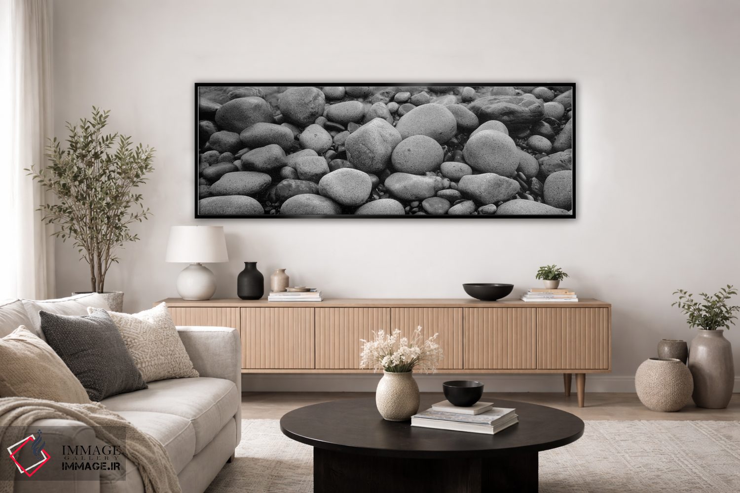 براساس پالت خنثی اثر، قاب مشکی مات (فریم باریک) پیشنهاد اول است و سفید مات (فریم باریک) مکمل. برای سفارشهای پروژهای با ابعاد و قابهای اختصاصی با ایماژ در تماس باشید.