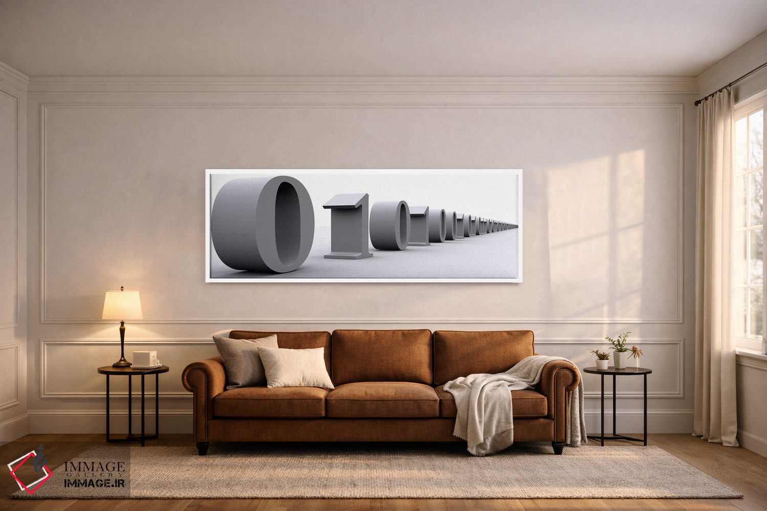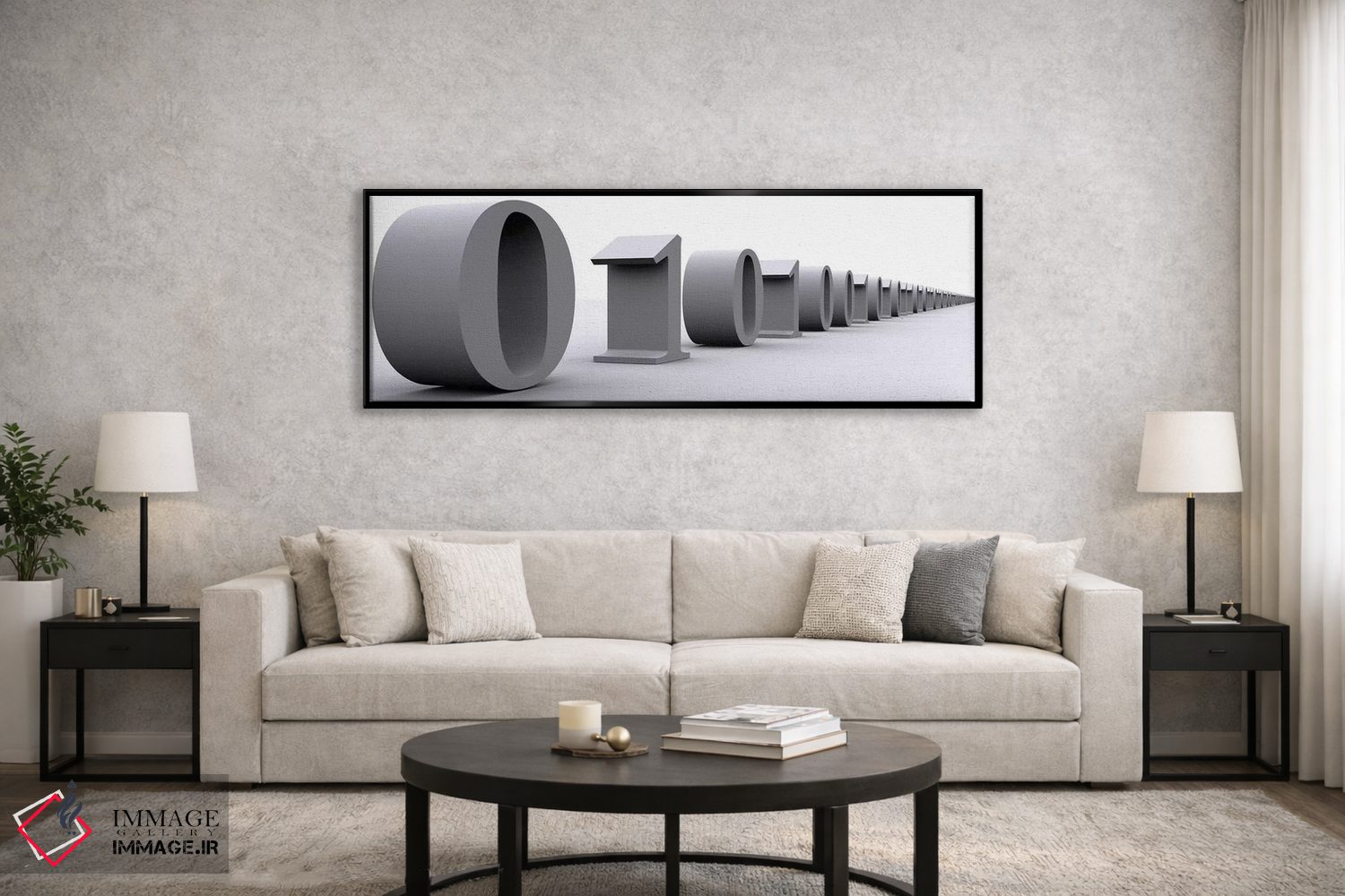 این اثرِ «پانورامیک ایمجز (استودیو عکاسی عریض)» با لحن سیاهوسفید، فضا را شیک و مرتب نشان میدهد؛ مناسبِ پذیراییهای مدرن و دفتر کار.
