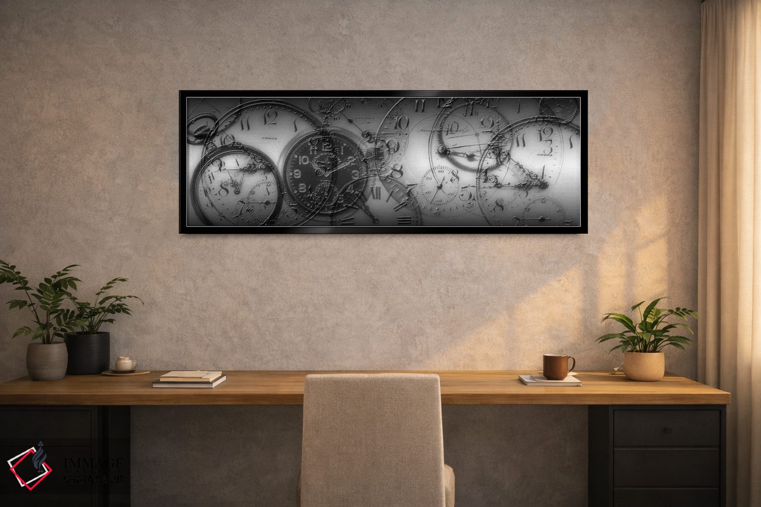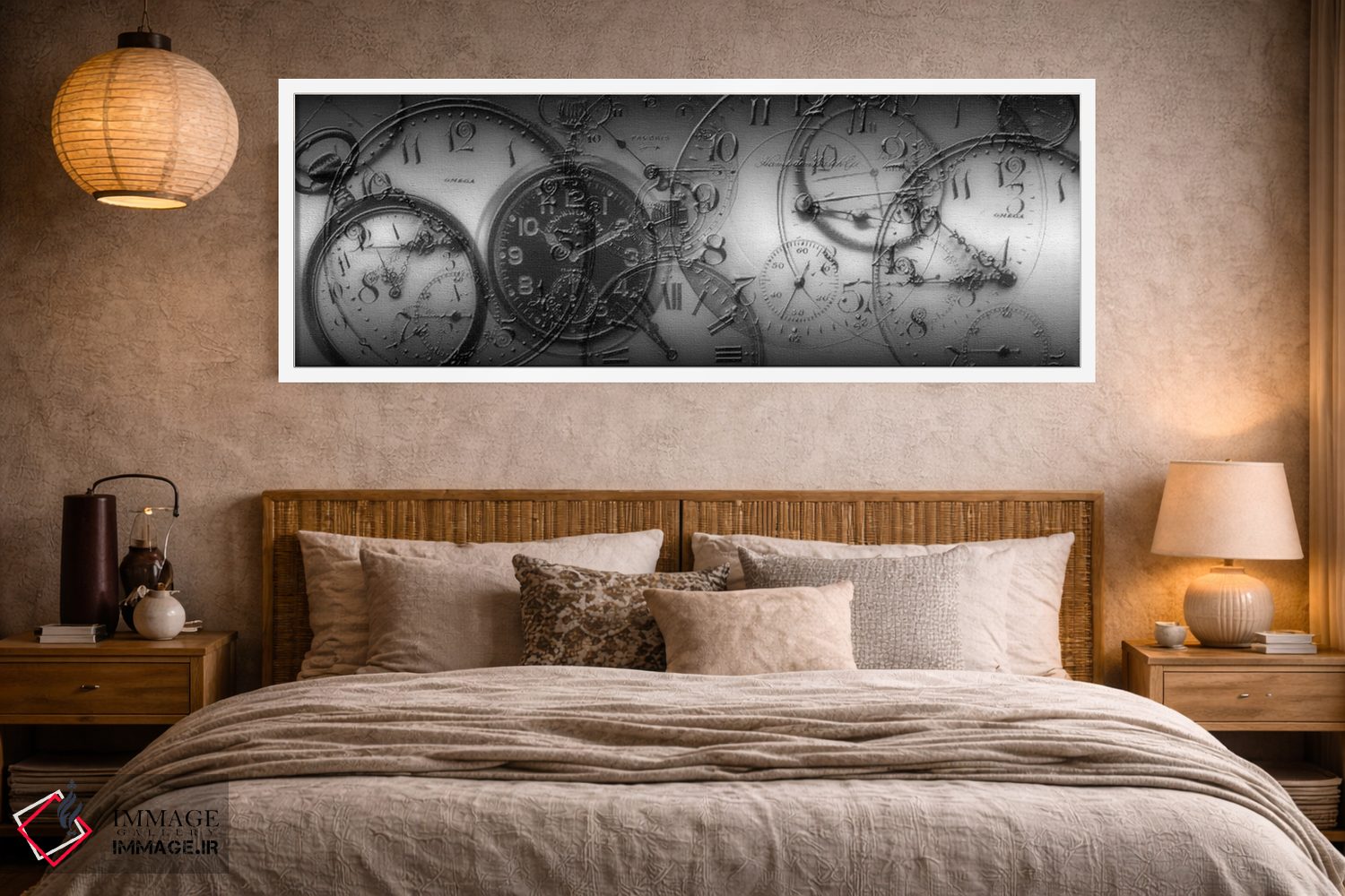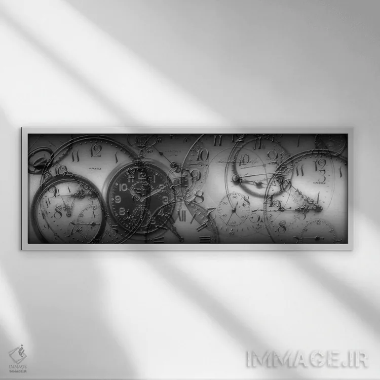 تابلو دکوراتیو مونتاژ ساعت جیبی قدیمی در سیاه و سفید اثر پانورامیک ایمجز