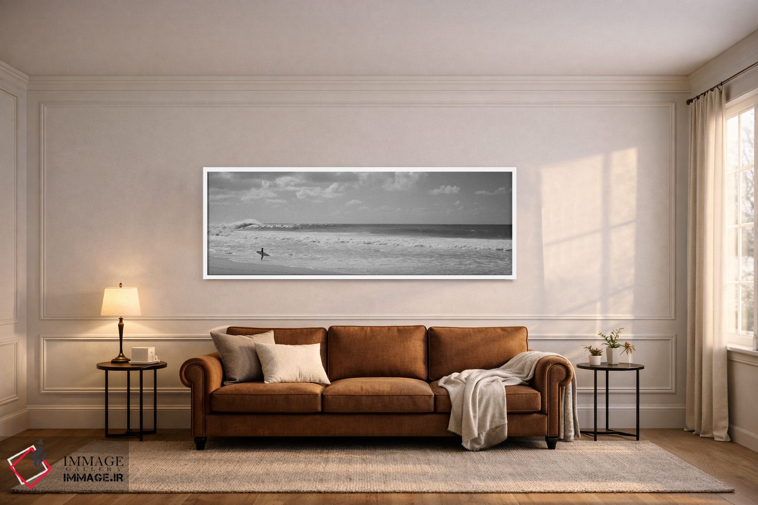 برای دیواری که دوست دارید «حرف داشته باشد»، «North Shore، Oahu، Hawaii، USA"—"موجسوار ایستاده بر ساحل، شمال ساحل، اوآهو، هاوایی، ایالات متحده"» اثرِ «پانورامیک ایمجز (استودیو عکاسی عریض)» یک مرکز توجهِ باوقار میسازد؛ برای دیوار بالای کنسول یا شومینه پیشنهاد میشود. به دیوار حس «تمامشده» میدهد.