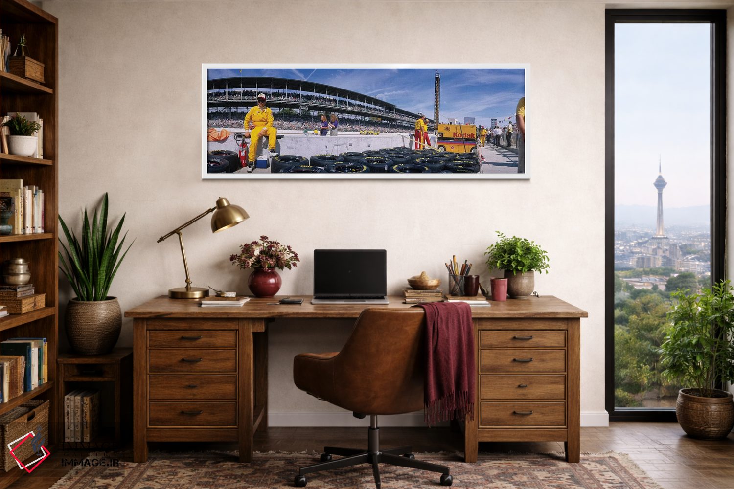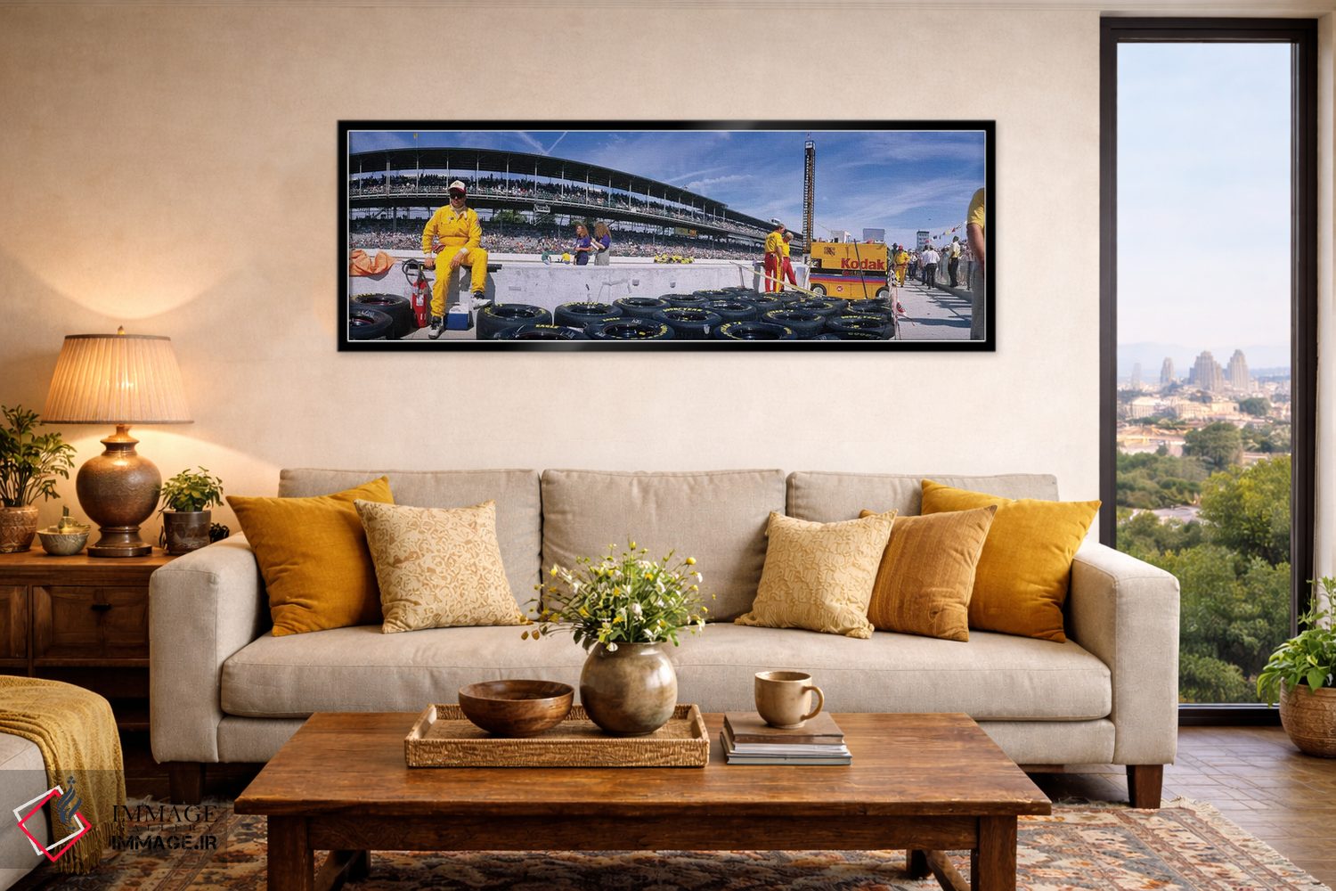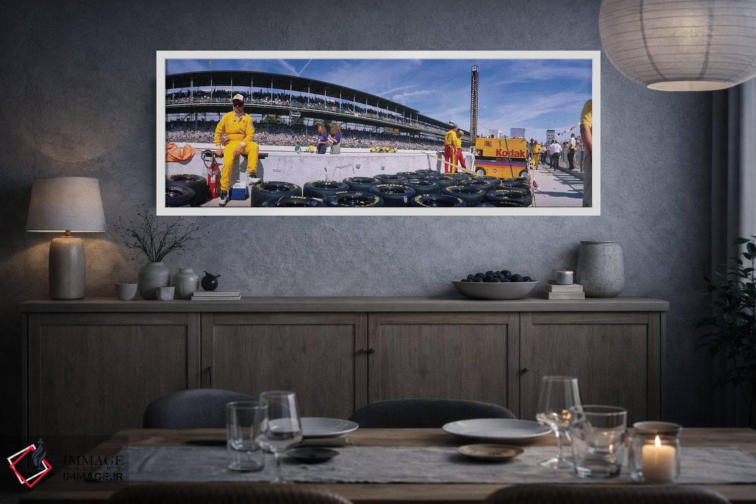 برای فضایی که میخواهید مرتبتر و حرفهایتر دیده شود، «رانندگان خودروهای موتوری در حال آماده شدن برای مسابقه، بریکیارد ۴۰۰، پیست اتومبیلرانی اینباوراپولیس موتور اسپیدوی، ایندیاناپولیس، ایندیانا، ایالات متحده آمریکا» اثرِ «پانورامیک ایمجز (استودیو عکاسی عریض)» چیدمان را از حالت پراکنده خارج میکند؛ برای اتاق خوابهای آرام و روشن پیشنهاد میشود. برای پروژههای طراحی داخلی هم گزینهای قابل اتکاست.