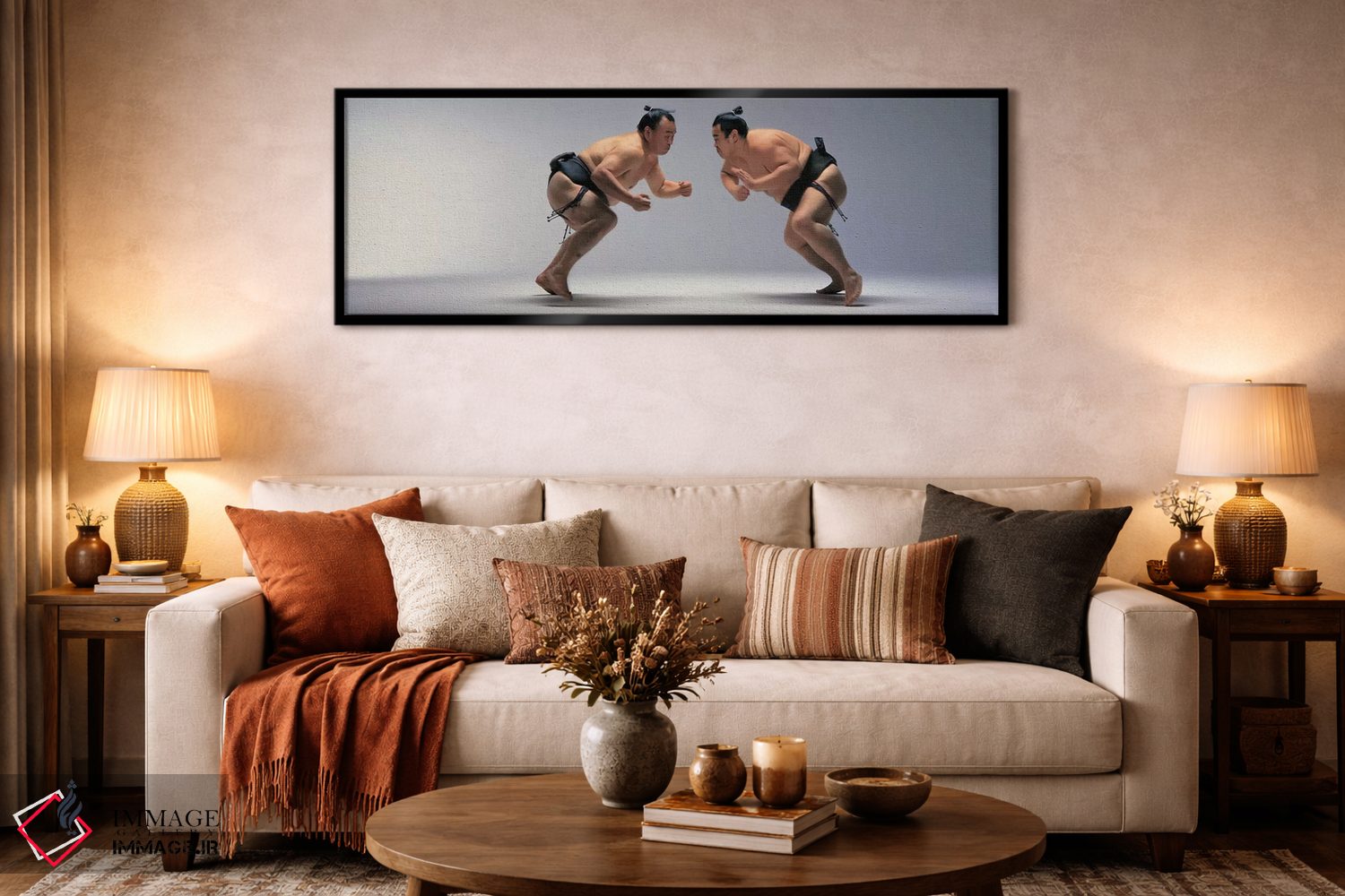 در این اثر، «کشتیگیران سامورایی، ژاپن» اثرِ «پانورامیک ایمجز (استودیو عکاسی عریض)» به فضا، روایت ملایم و قابل لمس میدهد؛ برای دکورهایی که بافت و جزئیات در آن مهم است پیشنهاد میشود. در کنار قاب مناسب، جلوهٔ کار چند برابر میشود.