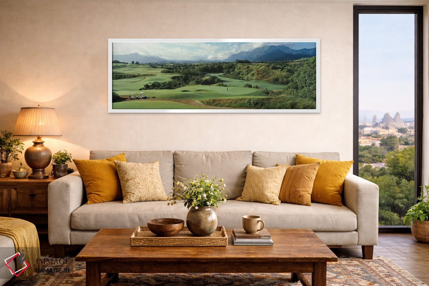وقتی چیدمان را با دقت میچینید، «نمای زاویه بلند از زمین گلف، زمین گلف پرنسویل، شهرستان کائویی، هاوایی، ایالات متحده آمریکا» اثرِ «پانورامیک ایمجز (استودیو عکاسی عریض)» یک «نقطهٔ مکث» خوشسلیقه میسازد؛ برای فضاهای مدرن با خطوط ساده پیشنهاد میشود. با نور گرم یا سرد، خوانایی و وقارش را حفظ میکند.