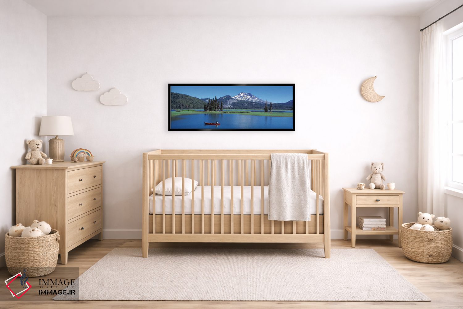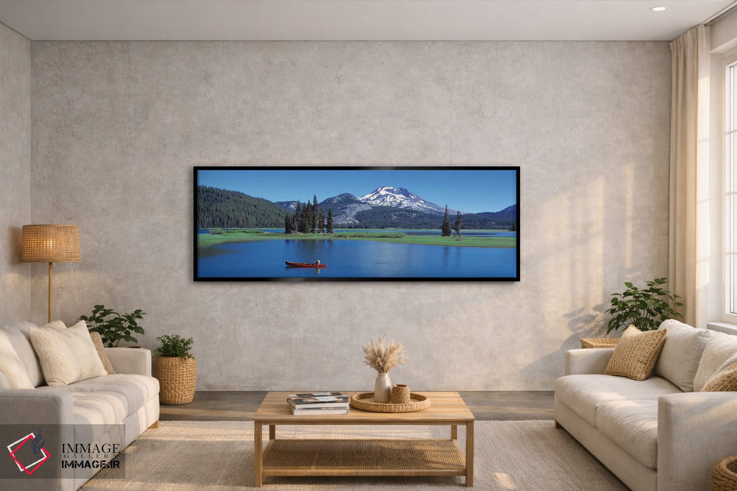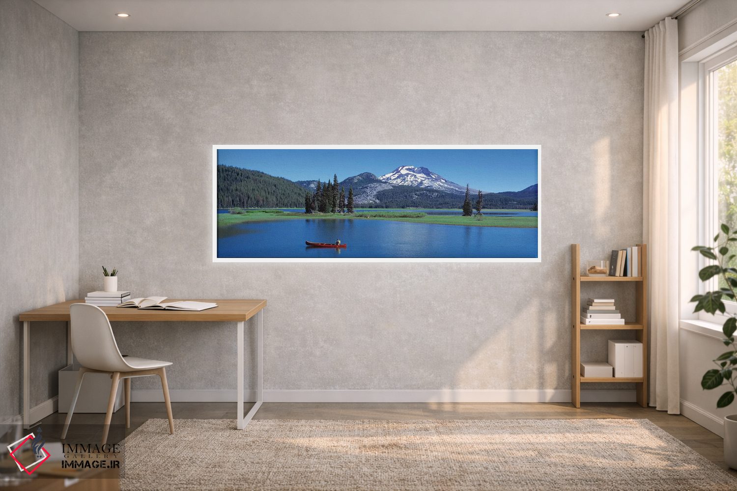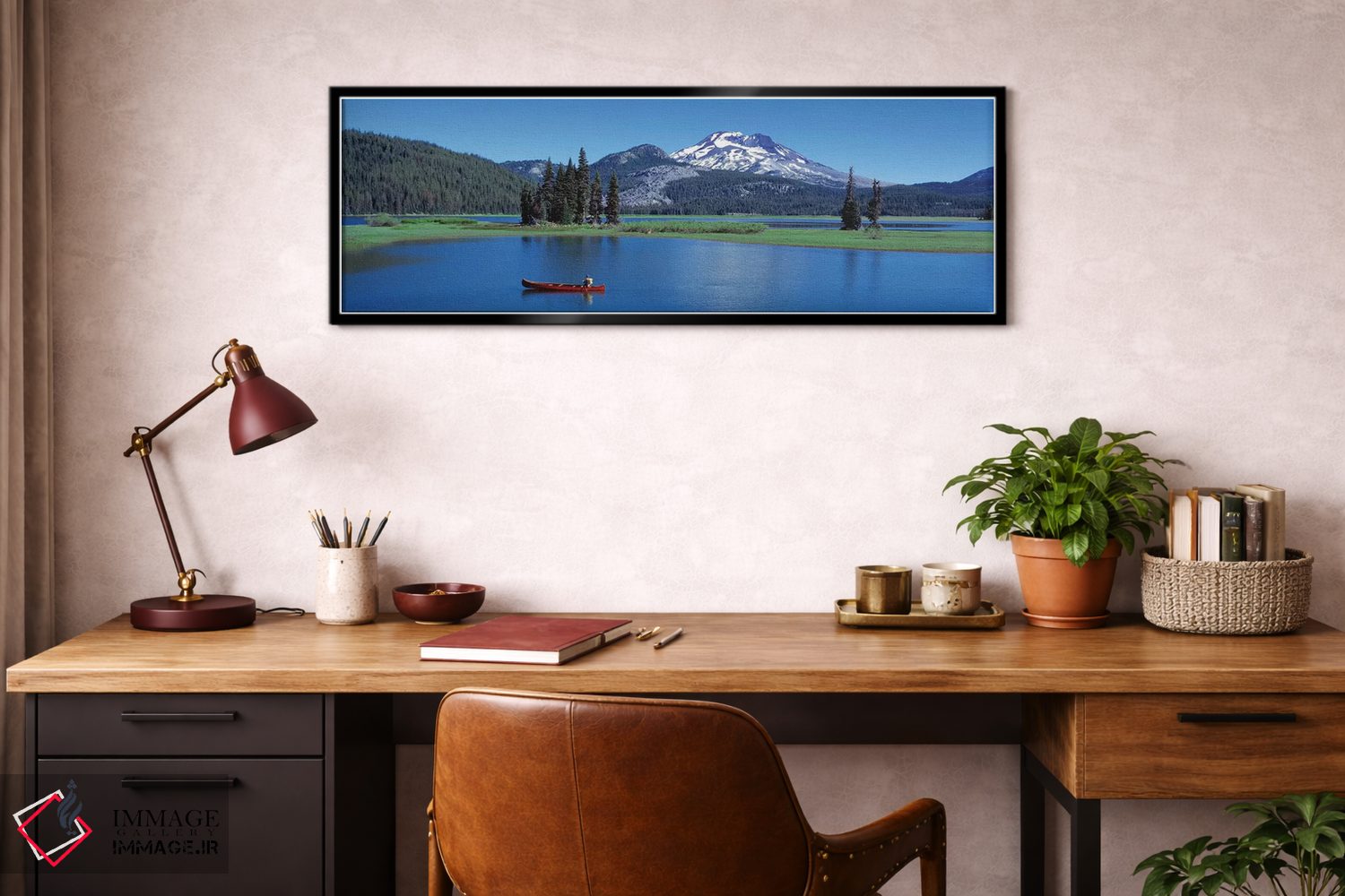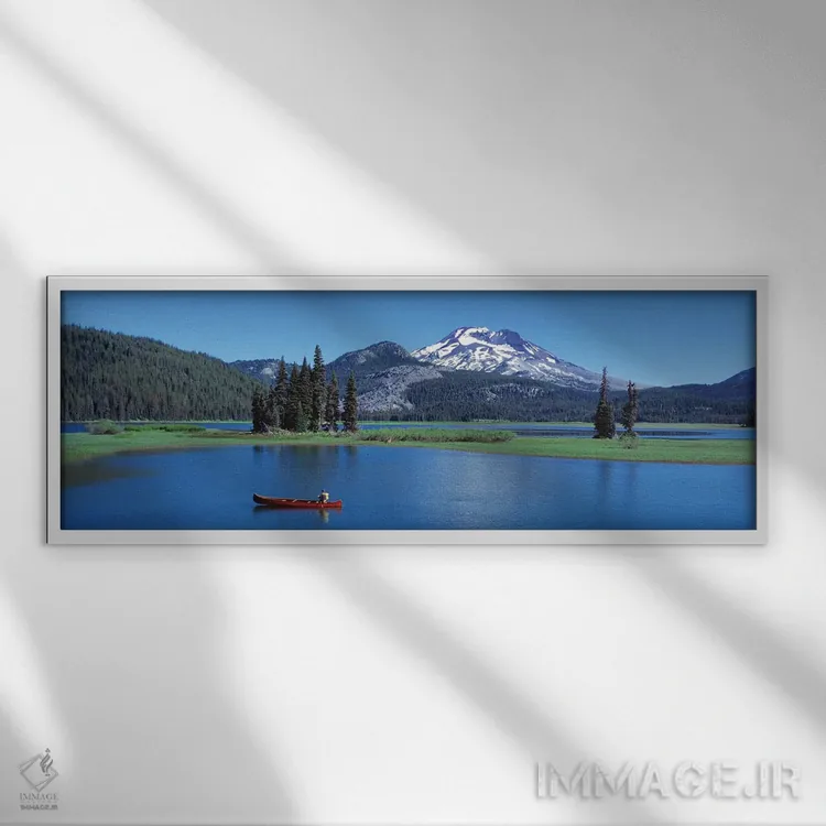 برای سلیقههایی که به جزئیات احترام میگذارند، «قایق کانوی قرمز، دریاچه اسپارکس، ایالت اورگان، ایالات متحده آمریکا» اثرِ «پانورامیک ایمجز (استودیو عکاسی عریض)» ریتم فضا را منظم میکند؛ برای کنار کتابخانه یا میز کار پیشنهاد میشود. اگر میخواهید مهمانها مکث کنند، این اثر دلیل خوبیست.