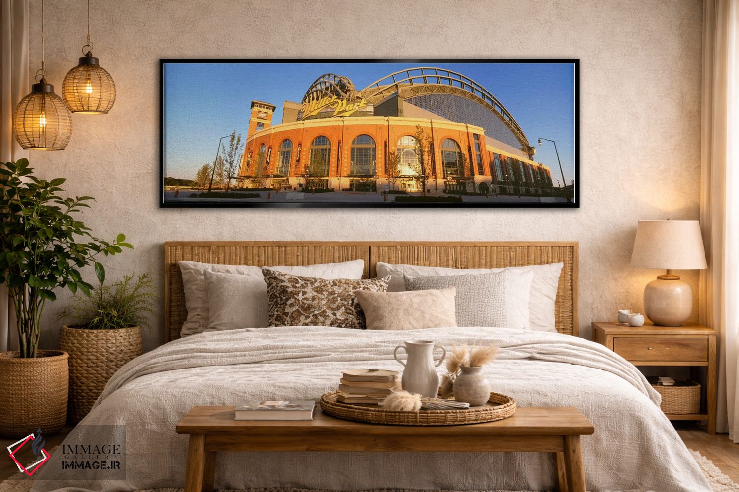 در نگاه اول، «پارک میلر، میلواکی، ویسکانسین، ایالات متحده آمریکا» اثرِ «پانورامیک ایمجز (استودیو عکاسی عریض)» جلوهٔ دیوار را منسجمتر میکند؛ برای دیوار بالای کنسول یا شومینه پیشنهاد میشود. برای هدیه دادن هم انتخابی محترمانه و امن است.
