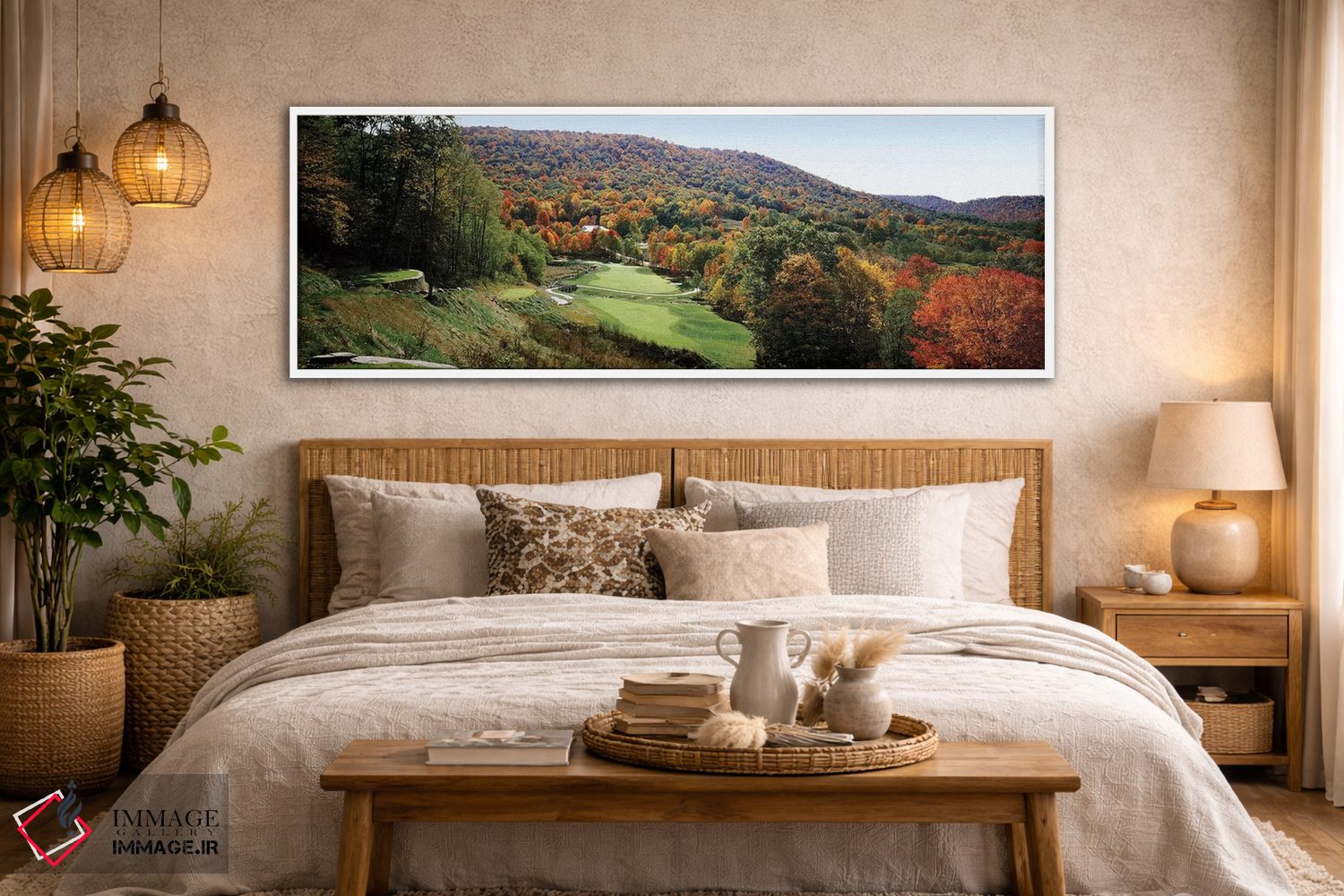 برای فضایی که میخواهید مرتبتر و حرفهایتر دیده شود، «زمین گلف بر روی تپه، زمین گلف هاوثورن ولی، هاوثورن ولی، سالون، اوهایو، ایالات متحده آمریکا» اثرِ «پانورامیک ایمجز (استودیو عکاسی عریض)» ریتم فضا را منظم میکند؛ برای فضاهایی با نور طبیعی پیشنهاد میشود. حضورش روی دیوار «مرتب» است؛ نه پر سر و صدا، نه بیاثر.