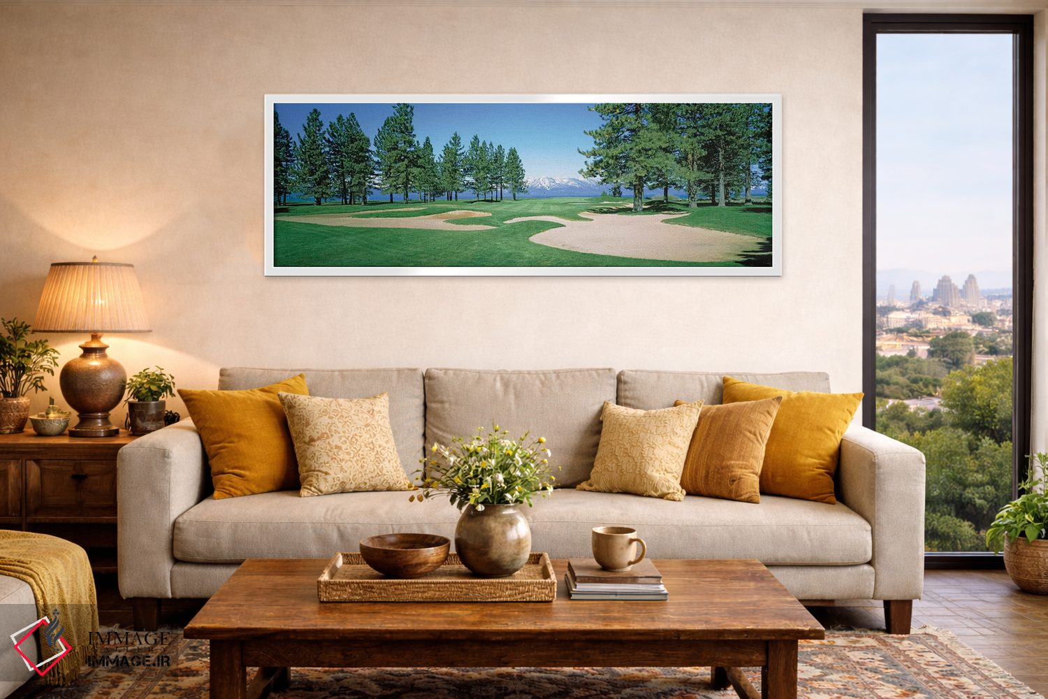 برای سلیقههایی که به جزئیات احترام میگذارند، «تلههای شن در زمین گلف، زمین گلف ادجوود تاهو، استاتلاین، شهرستان داگلاس، نوادا، ایالات متحده آمریکا» اثرِ «پانورامیک ایمجز (استودیو عکاسی عریض)» جلوهٔ اتاق را یک پله حرفهایتر میکند؛ برای دکورهای کلاسیک با چوب و پارچه پیشنهاد میشود. برای هدیه دادن هم انتخابی محترمانه و امن است.