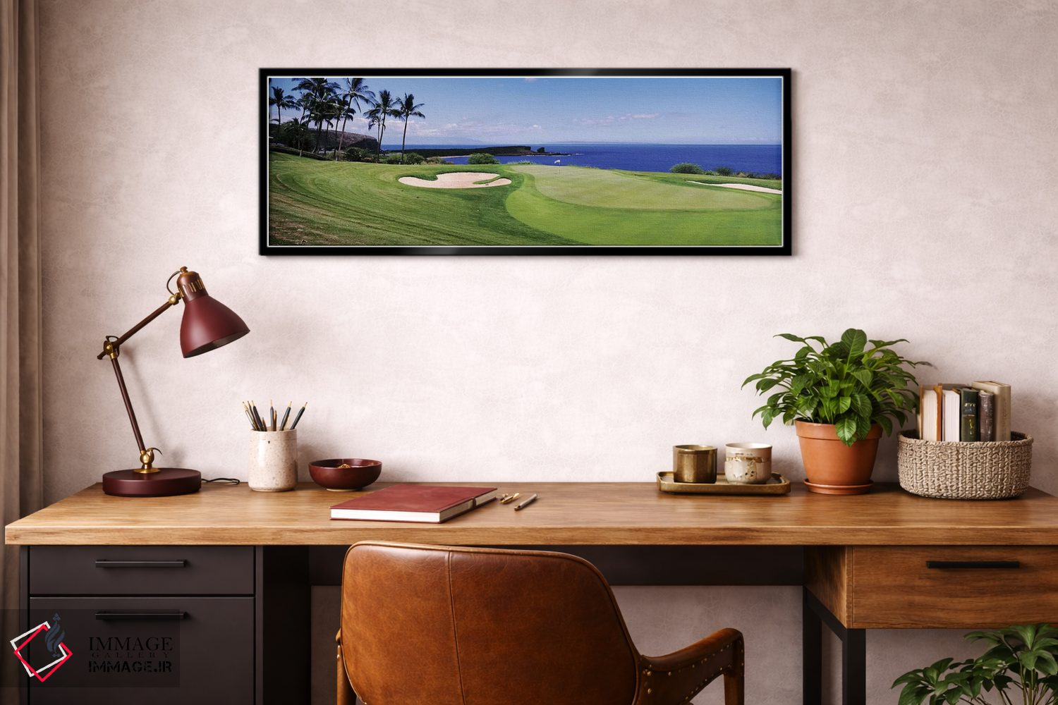 «زمین گلف در کنار اقیانوس، زمین گلف مانهله، شهر لانایی، هاوایی، ایالات متحده آمریکا» اثرِ «پانورامیک ایمجز (استودیو عکاسی عریض)» میتواند یک حس «تمامشده و پرداختشده» ایجاد کند؛ برای نشیمنهای صمیمی و پذیراییهای شیک پیشنهاد میشود. به دیوار حس «تمامشده» میدهد.