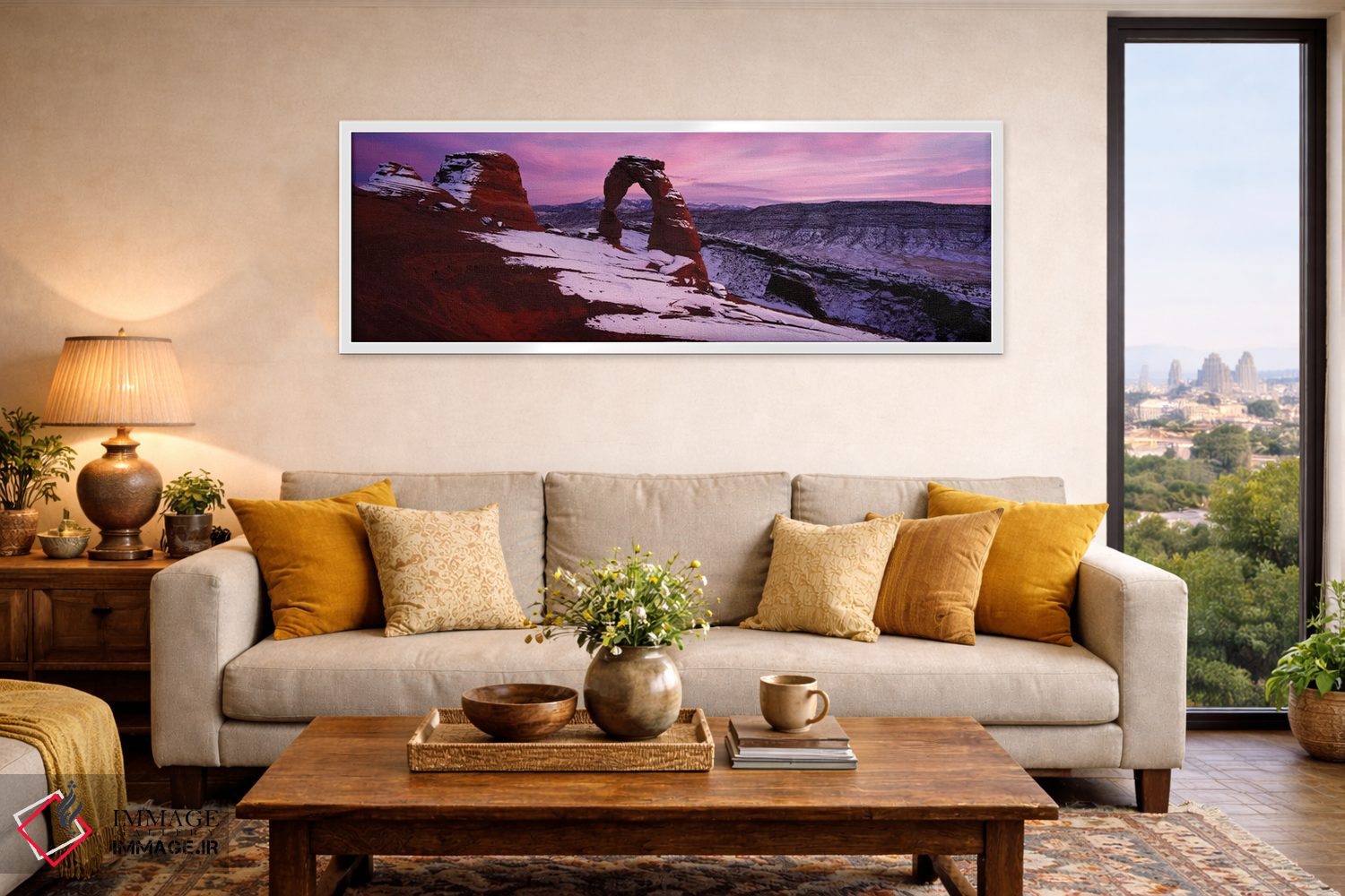 «قوس ظریف در زمستان، پارک ملی آرچز، یوتا، ایالات متحده آمریکا» اثرِ «پانورامیک ایمجز (استودیو عکاسی عریض)» میتواند تضادهای رنگی را خوشقوارهتر کند؛ برای خانههایی که به هماهنگی رنگها اهمیت میدهند پیشنهاد میشود. به دیوار حس «تمامشده» میدهد.