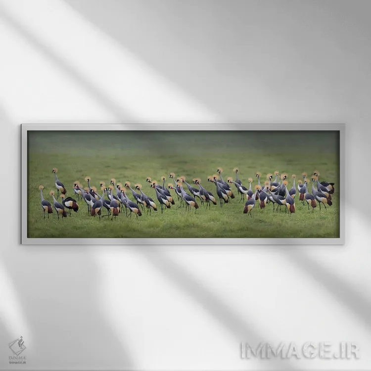 برای اتاقی که به یک عنصر دوستداشتنی نیاز دارد، «Ngorongoro Conservation Area، Crater Highlands، Arusha Region، Tanzania"—"کبکهای تاجدار، منطقه حفاظتشده نگورونگورو، ارتفاعات آتشفشانی، منطقه آروشا، تانزانیا"» اثرِ «پانورامیک ایمجز (استودیو عکاسی عریض)» فضا را صمیمیتر و دعوتکنندهتر نشان میدهد؛ برای اتاق کودک (بدون لحن کودکانه) انتخابی خوشسلیقه است. هر بار نگاهش میکنید، یک جزئیات تازه به چشم میآید.