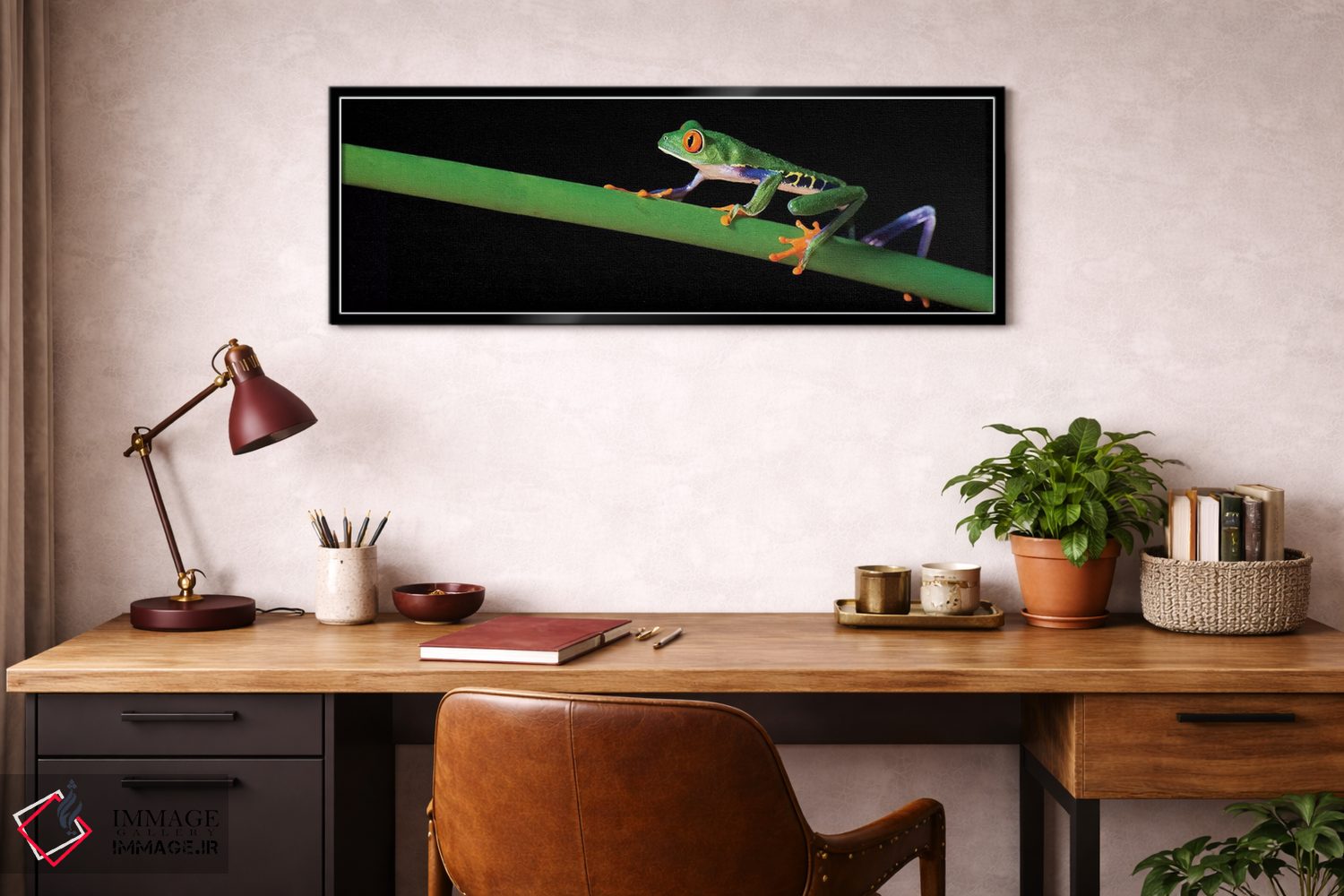 این تابلو با عنوان «Costa Rica"—"قورباغه درختی چشمقرمز، کاستاریکا"» اثرِ «پانورامیک ایمجز (استودیو عکاسی عریض)» جلوهٔ اتاق را یک پله حرفهایتر میکند؛ برای خانههایی که به هماهنگی رنگها اهمیت میدهند پیشنهاد میشود. در کنار نورپردازی نقطهای، جلوهاش حرفهایتر میشود.