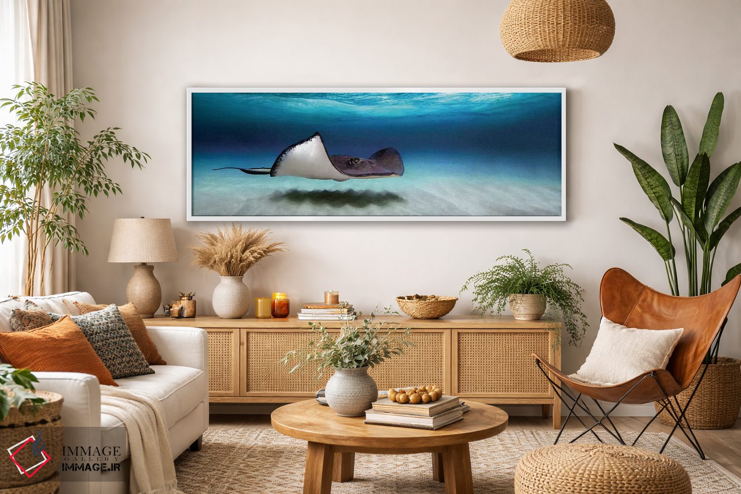 در یک جمله، «North Sound، Grand Cayman، Cayman Islands"—"ماهی راوی جنوبی، نورت ساند، گران کایمن، جزایر کایمن"» اثرِ «پانورامیک ایمجز (استودیو عکاسی عریض)» سلیقهٔ صاحبخانه را بیاغراق نشان میدهد؛ برای اتاق خوابهای آرام و روشن پیشنهاد میشود. با نور گرم یا سرد، خوانایی و وقارش را حفظ میکند.