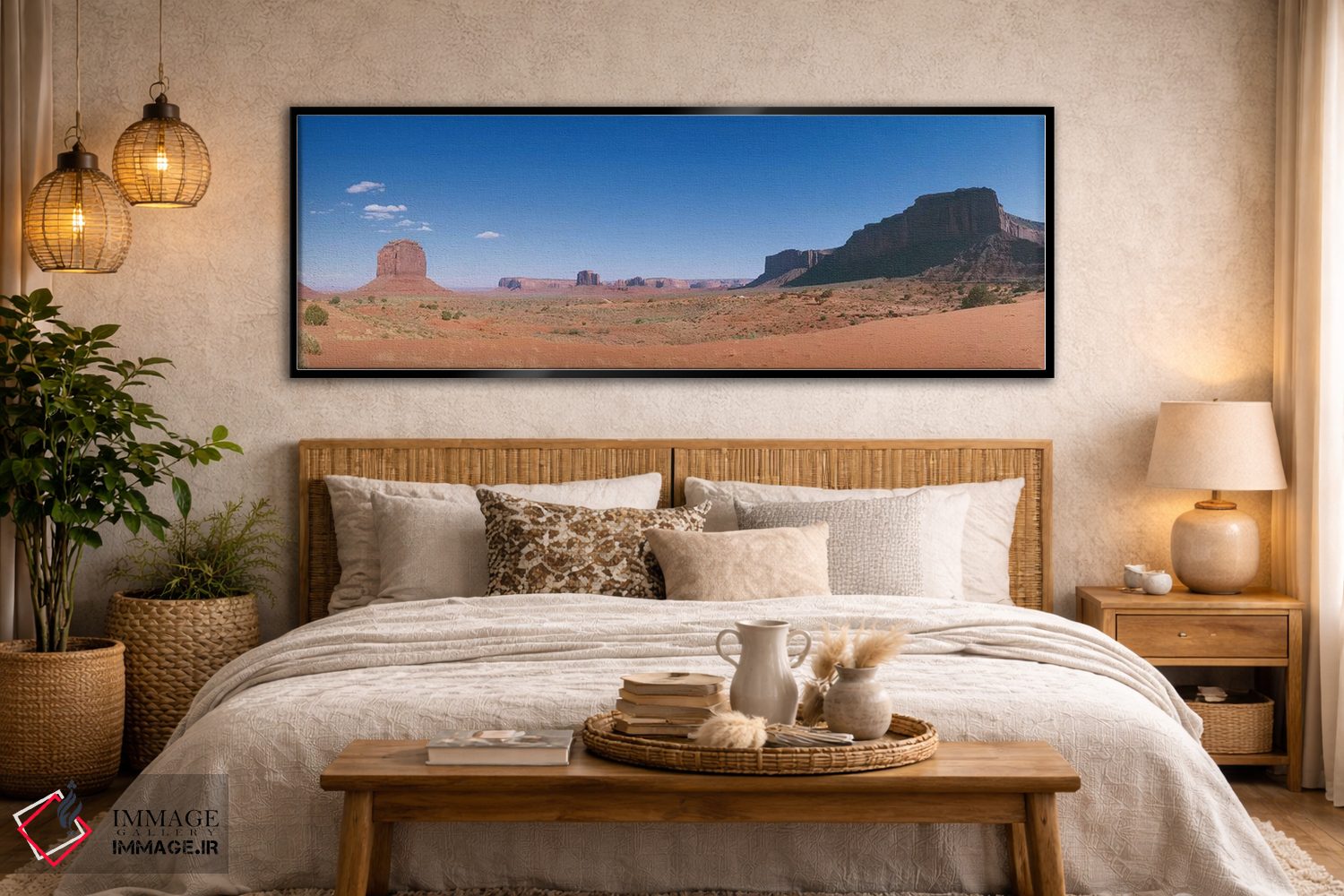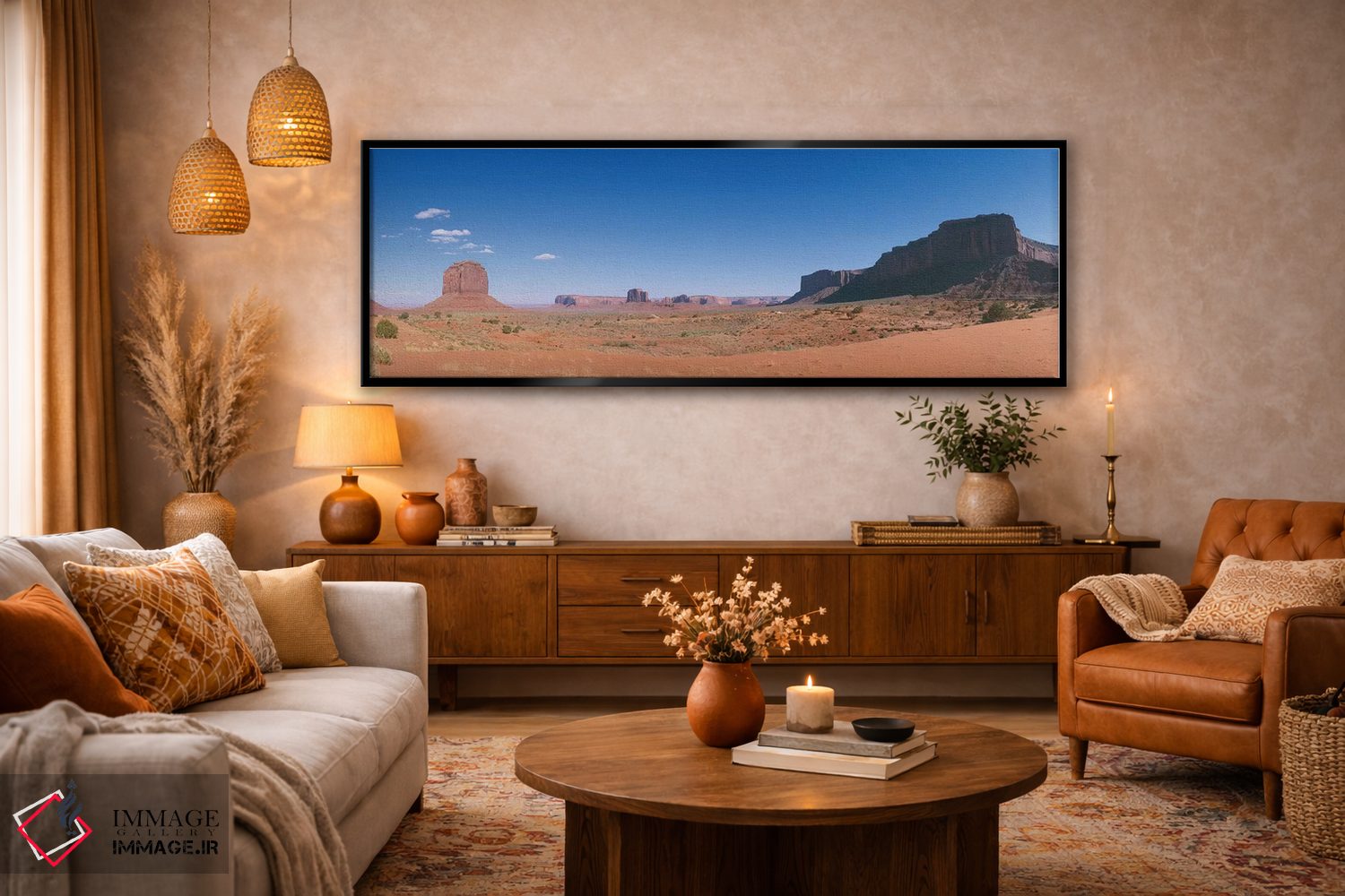 برای دیواری که میخواهید سلیقهتان را آرام و دقیق نشان بدهد، «دره یادبود، پارک قبیلهای ناواهو» اثرِ «پانورامیک ایمجز (استودیو عکاسی عریض)» در کنار مبلمان، خوشنشین و هماهنگ مینشیند؛ برای فضاهایی که میخواهید آرام اما جدی دیده شوند پیشنهاد میشود. برای فضاهایی که دنبال «وقار» هستند، انتخابی مطمئن است.