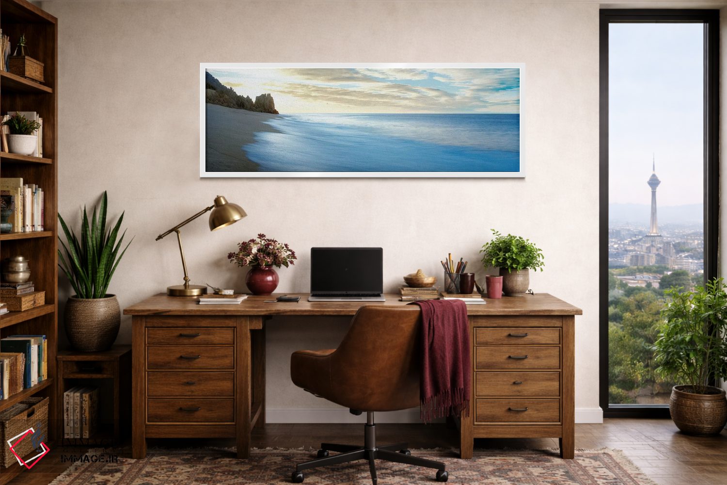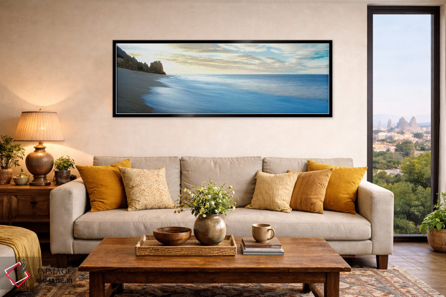 برای دیواری که دوست دارید «حرف داشته باشد»، «"منظره دریا در غروب، کابو سن لوکاس، باخا کالیفرنیا سور، مکزیک"» اثرِ «پانورامیک ایمجز (استودیو عکاسی عریض)» در کنار مبلمان، خوشنشین و هماهنگ مینشیند؛ برای کافهها و فضاهای عمومی کوچک پیشنهاد میشود. هم از دور چشمگیر است و هم از نزدیک پرداخت دارد.