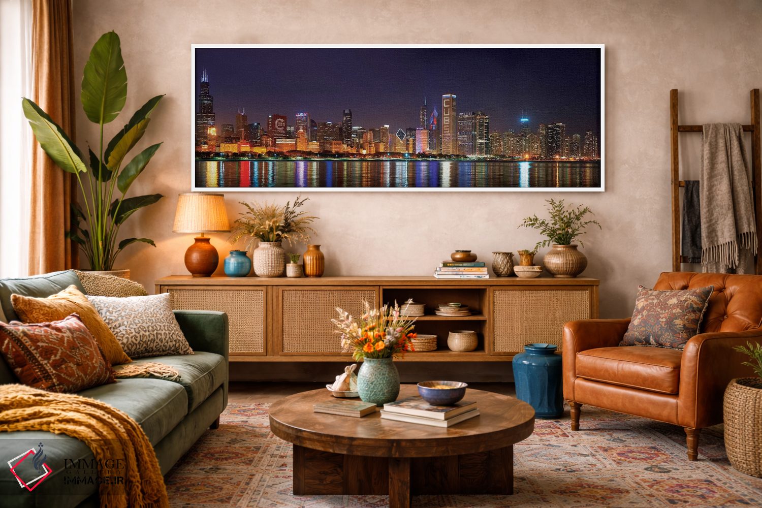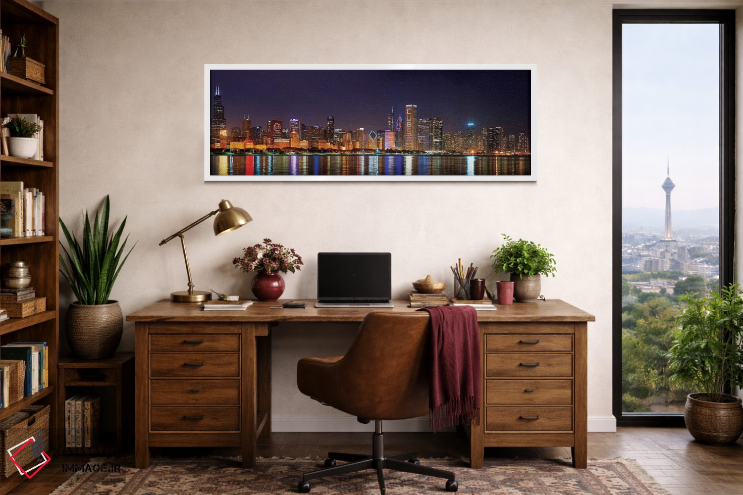 برای دیواری که میخواهید سلیقهتان را آرام و دقیق نشان بدهد، «روشنایی پراید شیکاگو کابز در سراسر نمای آسمانخراش مرکز شهر اول، شیکاگو، ایلینوی، ایالات متحده آمریکا» اثرِ «پانورامیک ایمجز (استودیو عکاسی عریض)» به فضا، روایت ملایم و قابل لمس میدهد؛ برای فضاهای مدرن با خطوط ساده پیشنهاد میشود. این تابلو میتواند شروعِ خوبی برای یک دیوار گالری باشد.