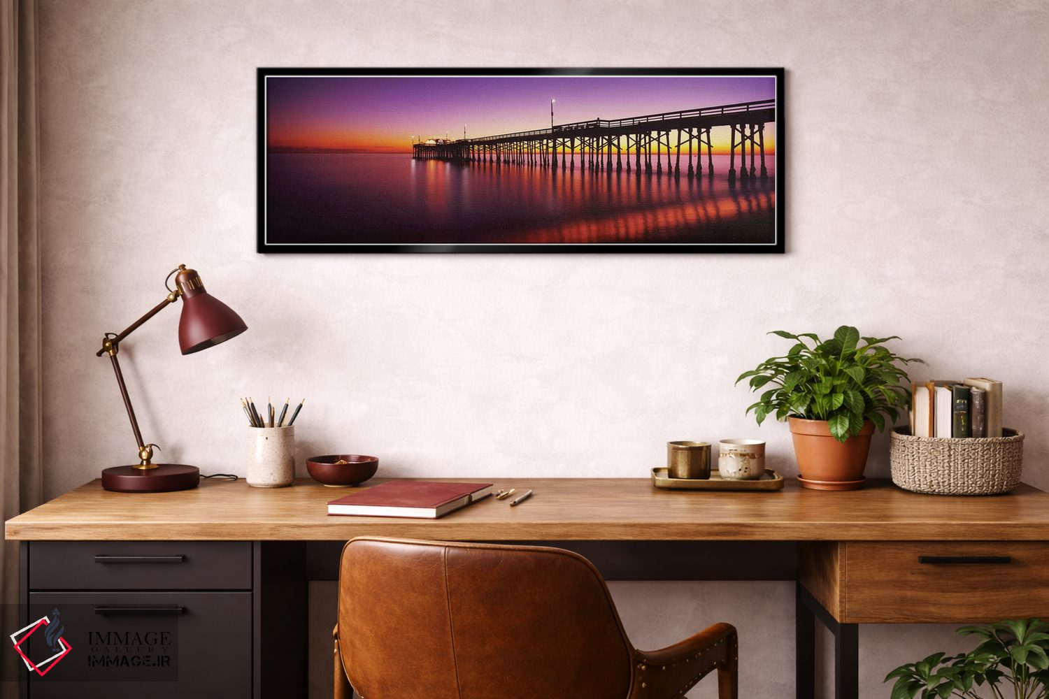 برای فضایی که میخواهید مرتبتر و حرفهایتر دیده شود، «اسکله بالبوآ در غروب، ساحل نیوپورت، شهرستان اورنج، کالیفرنیا، ایالات متحده آمریکا» اثرِ «پانورامیک ایمجز (استودیو عکاسی عریض)» فضا را روشنتر و زندهتر نشان میدهد؛ برای اتاق خوابهای آرام و روشن پیشنهاد میشود. حضورش روی دیوار «مرتب» است؛ نه پر سر و صدا، نه بیاثر.