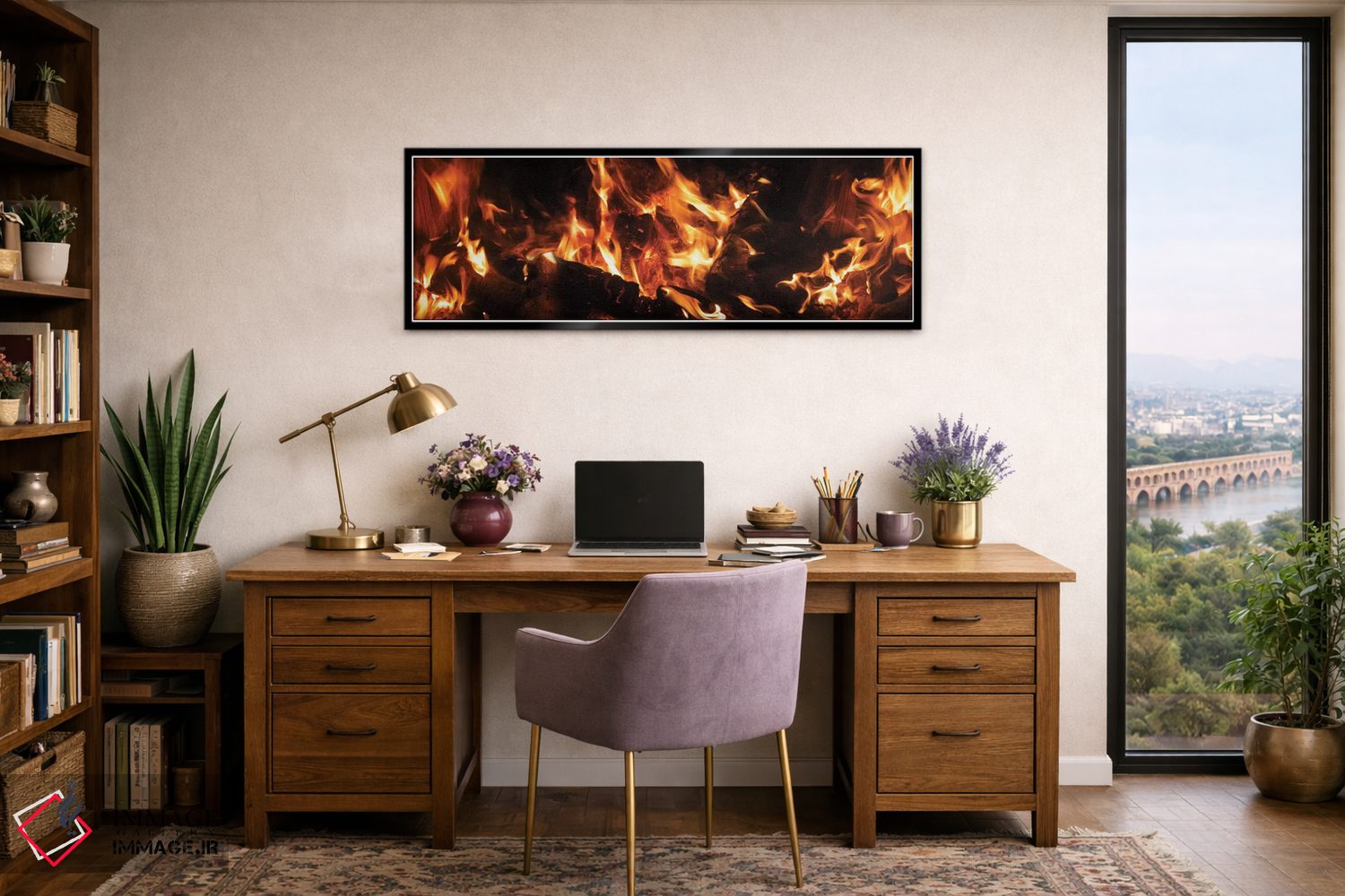 وقتی چیدمان را با دقت میچینید، «"نمای نزدیک آتشبس در شب III"» اثرِ «پانورامیک ایمجز (استودیو عکاسی عریض)» به چیدمان، عمق و وقار میدهد؛ برای دکورهایی که بافت و جزئیات در آن مهم است پیشنهاد میشود. در کنار نورپردازی نقطهای، جلوهاش حرفهایتر میشود.