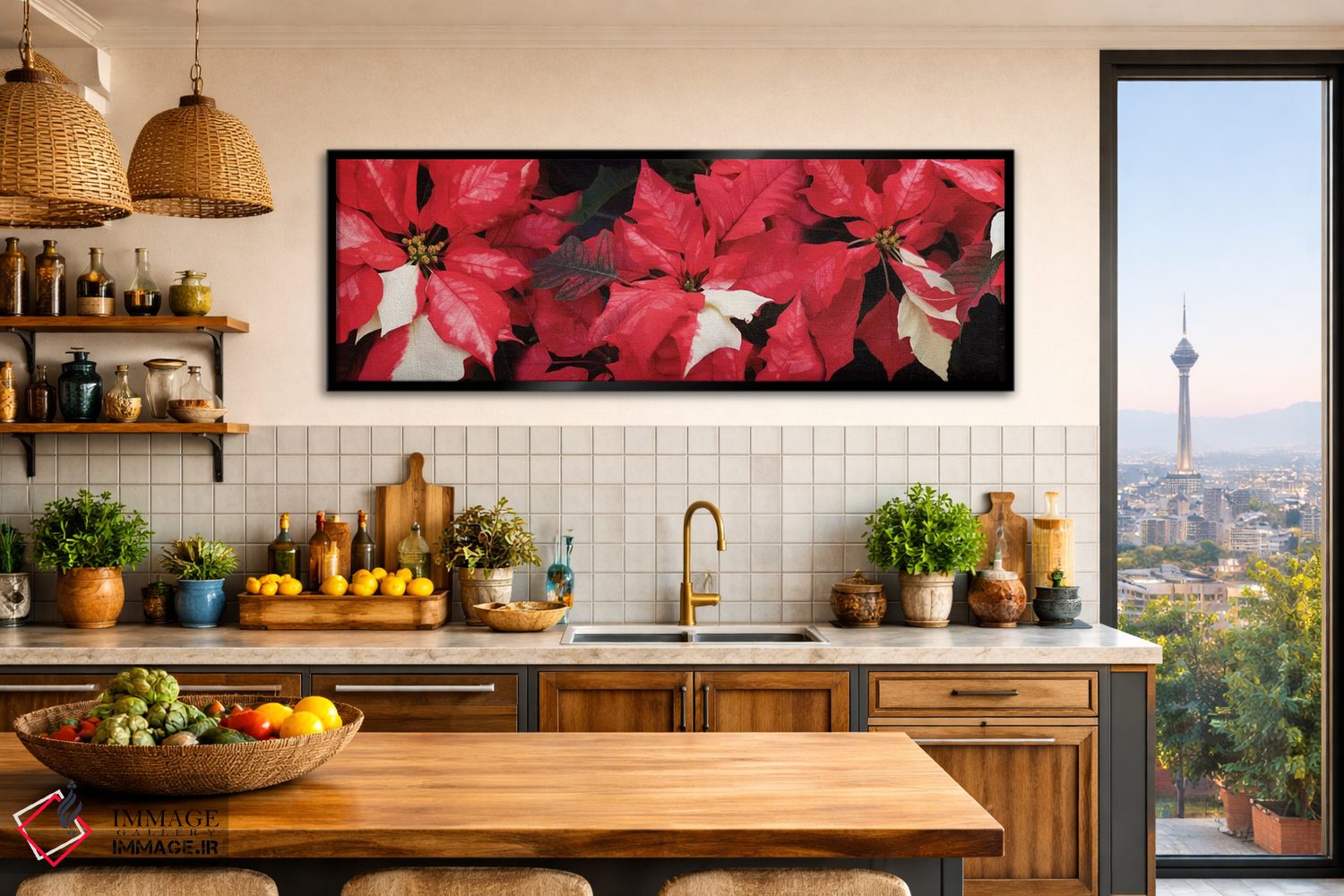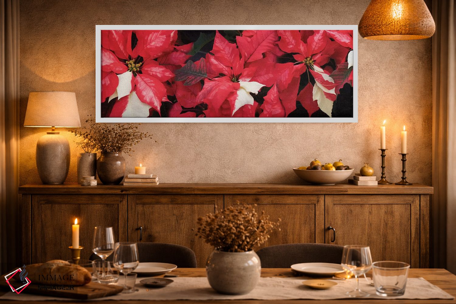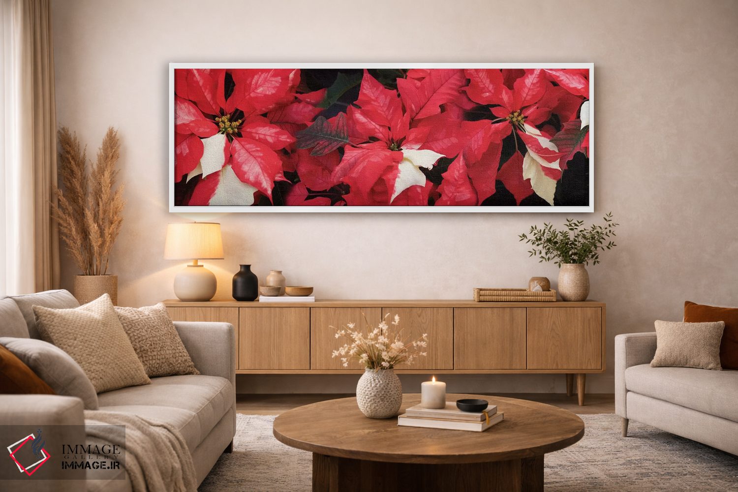 تابلو دکوراتیو گل های پوانستیا نزدیک II اثر پانورامیک ایمجز