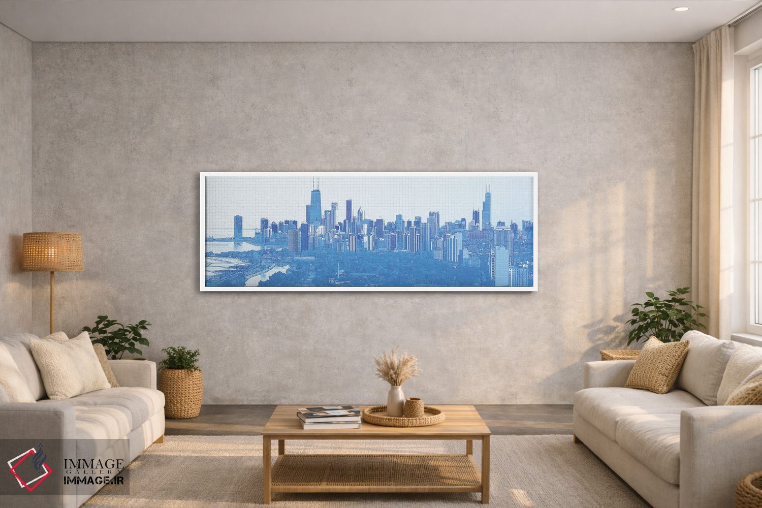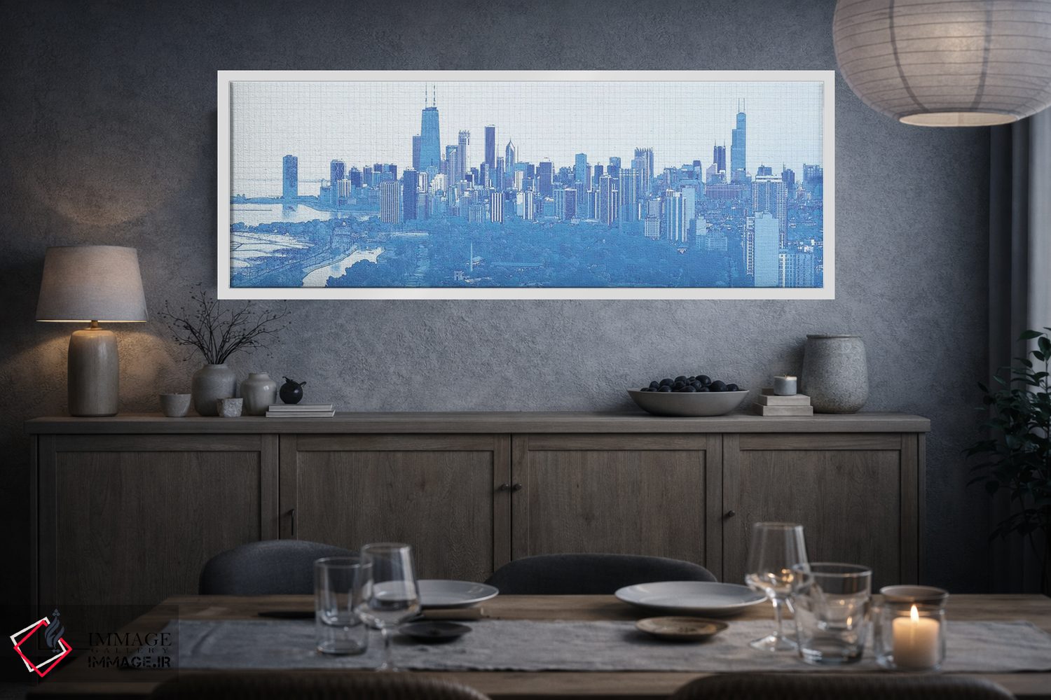 در یک جمله، «طرح دیجیتال از نمای آسمانخراشهای شیکاگو، ایالات متحده VI» اثرِ «پانورامیک ایمجز (استودیو عکاسی عریض)» جلوهٔ دیوار را منسجمتر میکند؛ برای فضاهای مدرن با خطوط ساده پیشنهاد میشود. در کنار گیاهان آپارتمانی هم جلوهٔ لطیفی پیدا میکند.