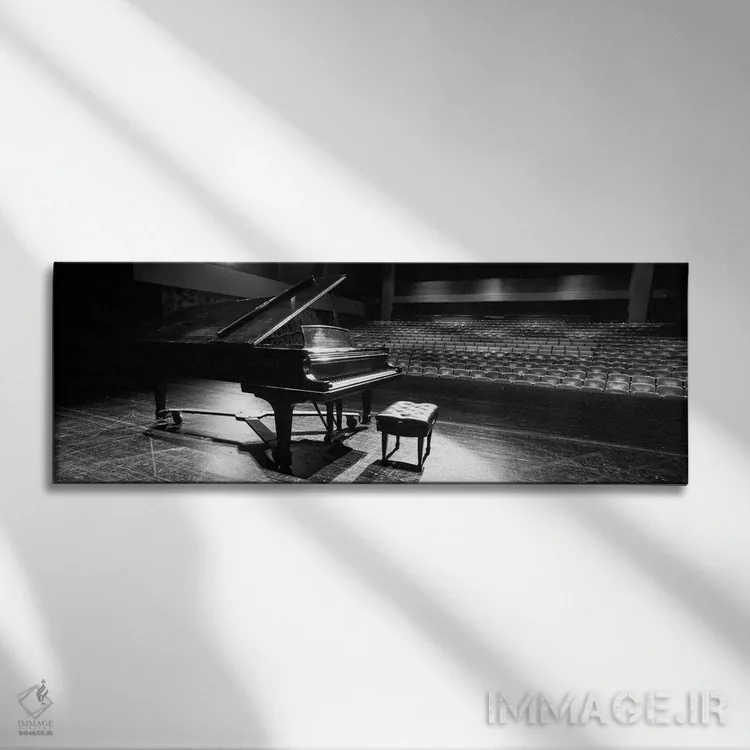 تابلو دکوراتیو پیانو بزرگ روی صحنه سالن کنسرت، دانشگاه هاوایی، هیلو، ه… اثر پانورامیک ایمجز