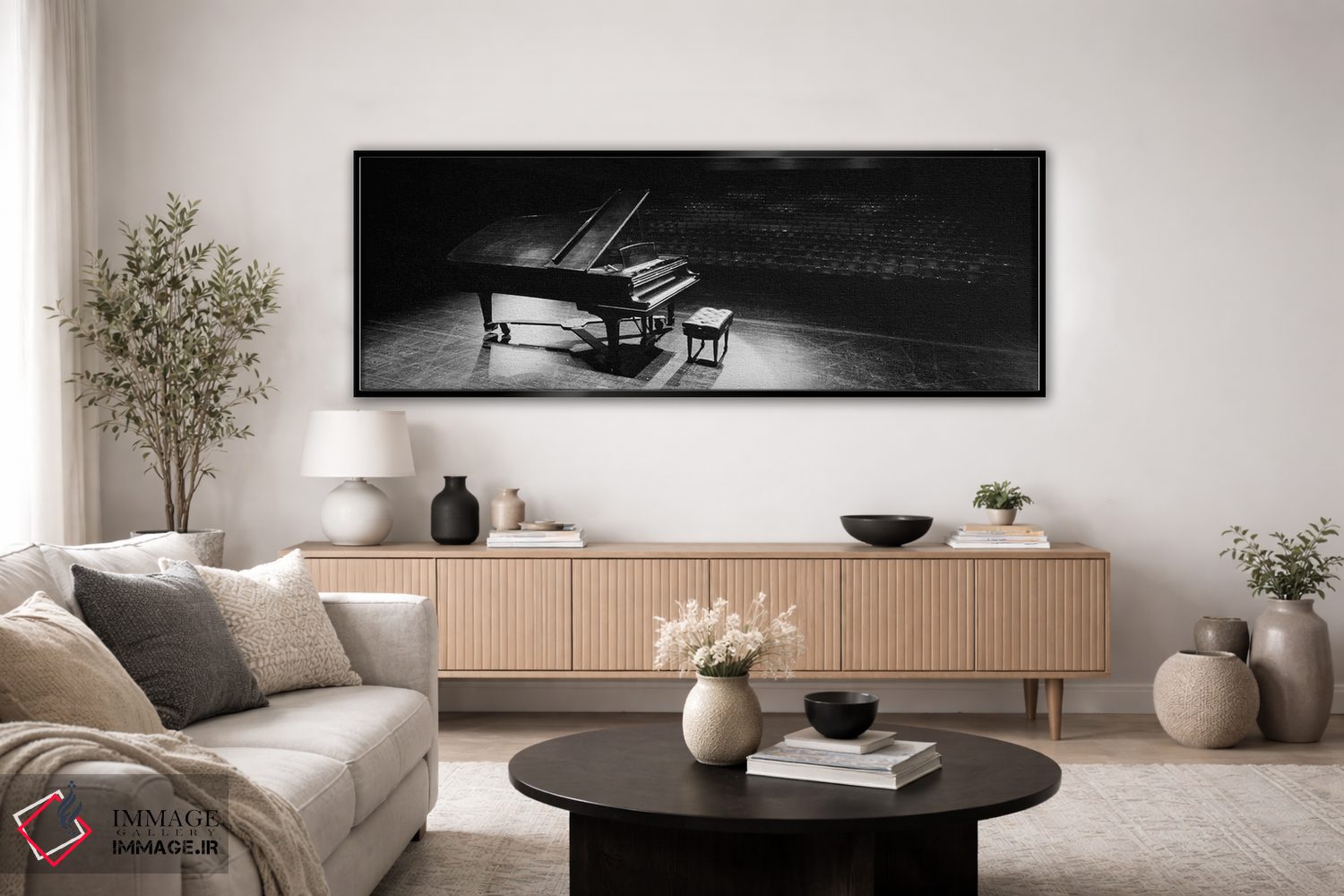 یک تابلو موسیقیمحور که با روایتی مینیمال و مرتب، فضا را پرانرژیتر نشان میدهد اثرِ «پانورامیک ایمجز (استودیو عکاسی عریض)».