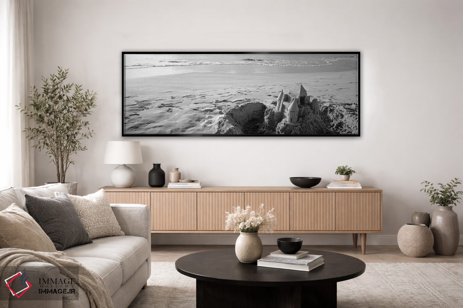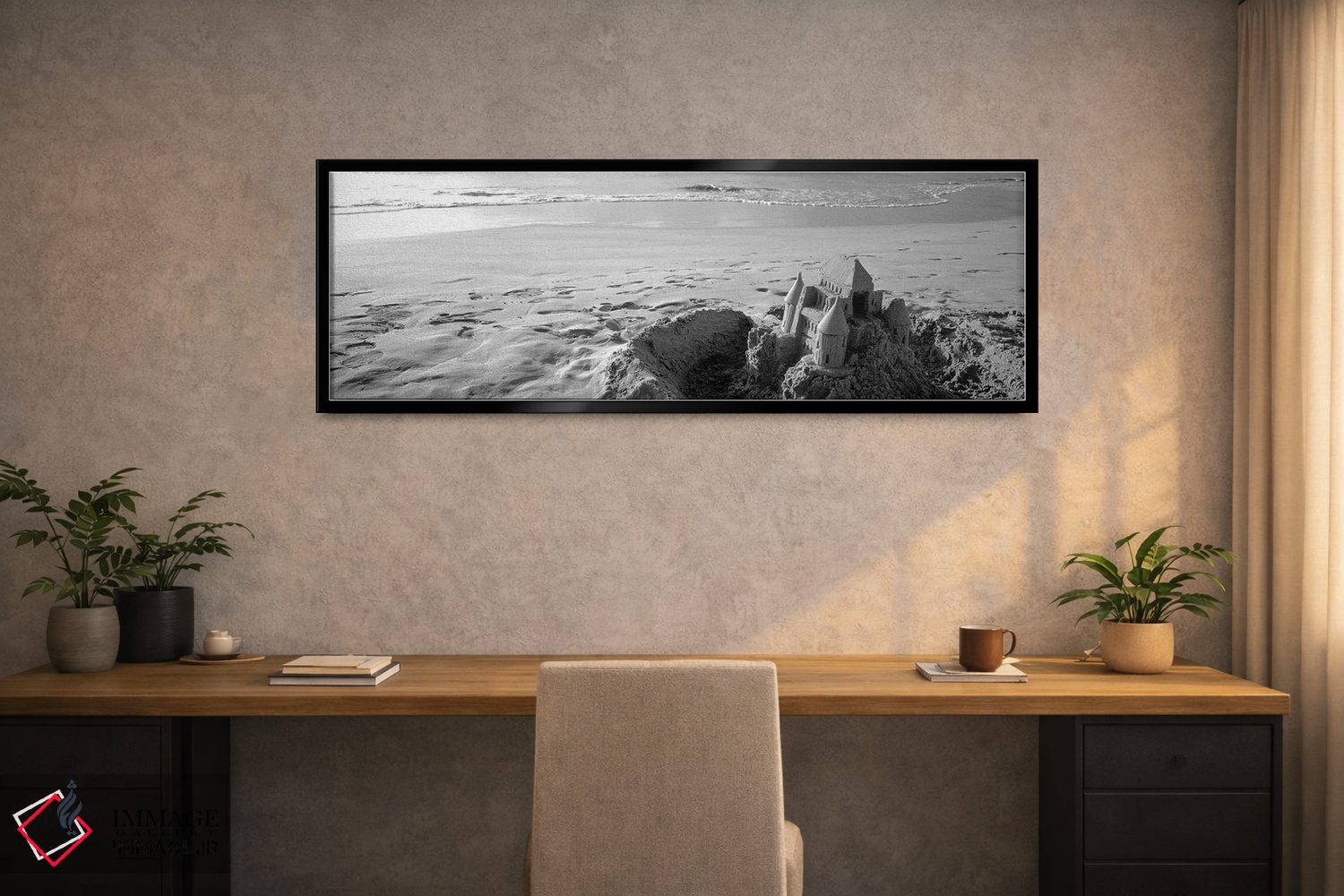 برای دیواری که میخواهید سلیقهتان را آرام و دقیق نشان بدهد، «"قلعه شنی در ساحل هاپونا، جزیره بزرگ، هاوایی، ایالات متحده آمریکا (سیاه و سفید)"» اثرِ «پانورامیک ایمجز (استودیو عکاسی عریض)» دیوار را از تزئین به «حضور» تبدیل میکند؛ برای دیوارهای گالریوار و ترکیب چند اثر پیشنهاد میشود. هم از دور چشمگیر است و هم از نزدیک پرداخت دارد.