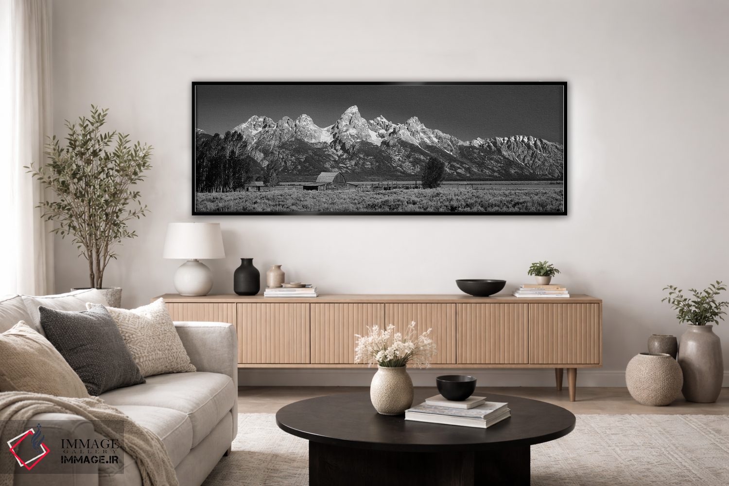 براساس پالت خنثی اثر، قاب مشکی مات (فریم باریک) پیشنهاد اول است و سفید مات (فریم باریک) مکمل. برای سفارشهای پروژهای با ابعاد و قابهای اختصاصی با ایماژ در تماس باشید.