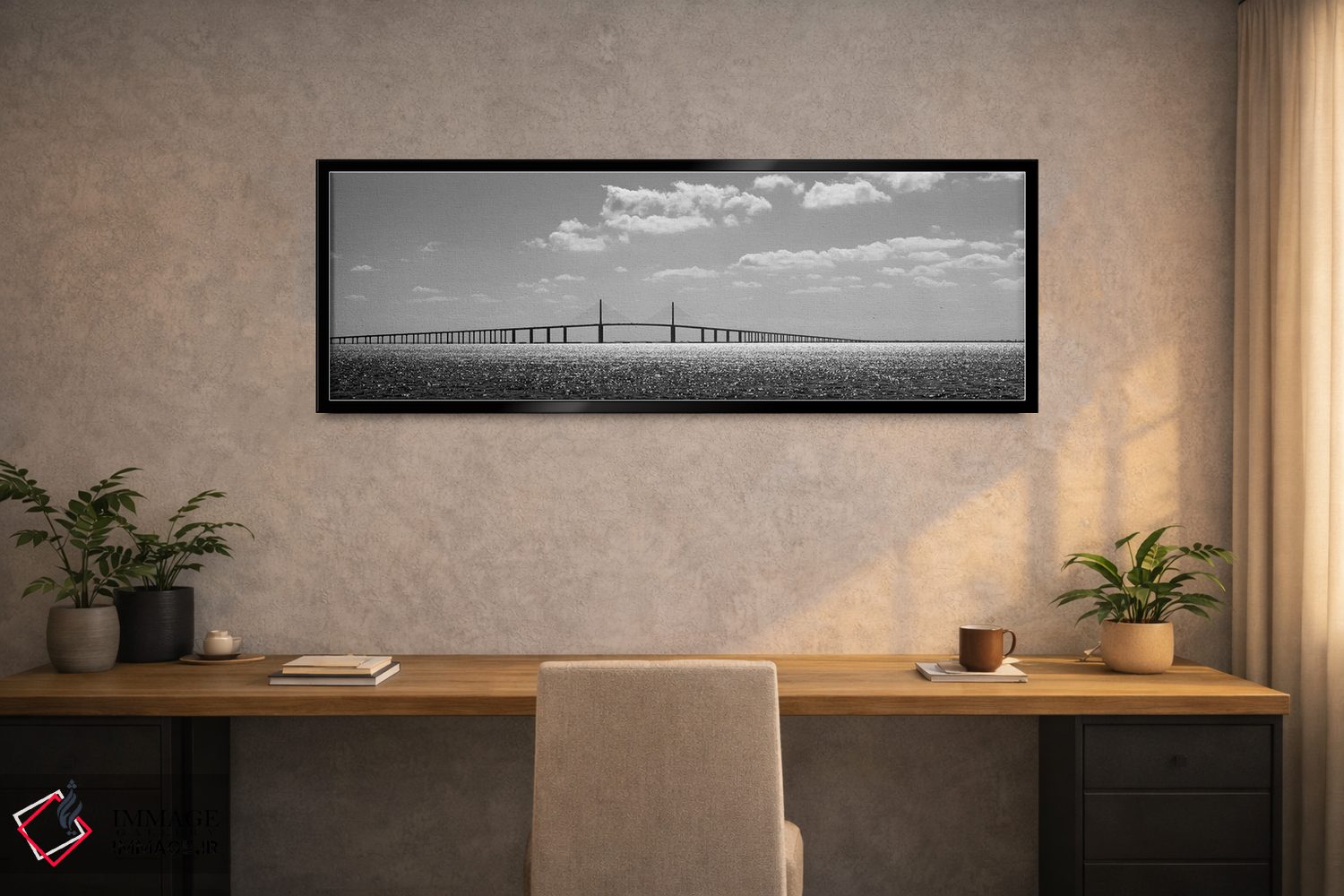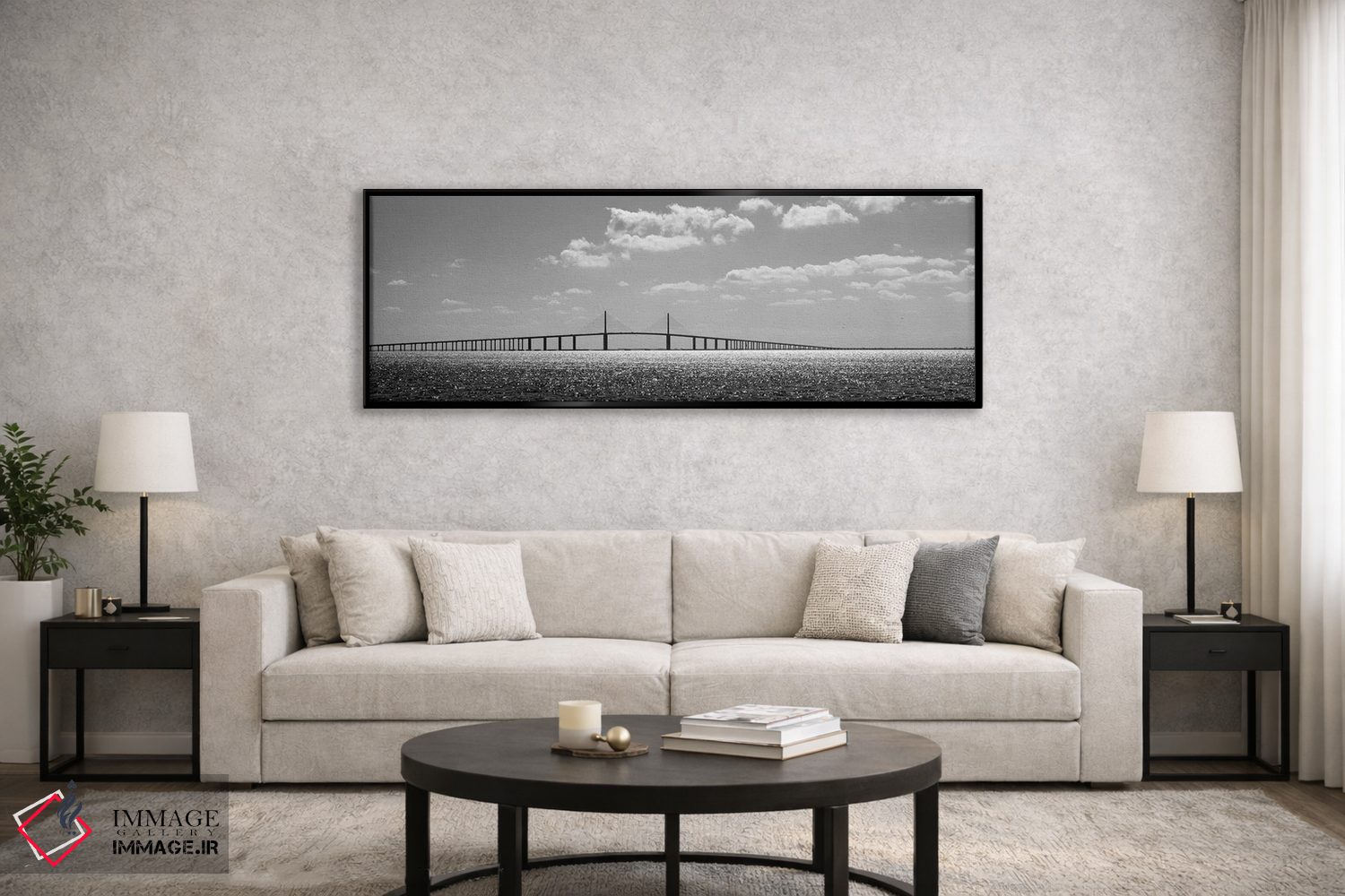 این تابلو اثرِ «پانورامیک ایمجز (استودیو عکاسی عریض)» با حس سیاهوسفید، برای راهروهای شیک و دیوارهای کمجزئیات انتخاب مناسبی است؛ موضوعِ این اثر هم فضا را مرتبتر نشان میدهد.