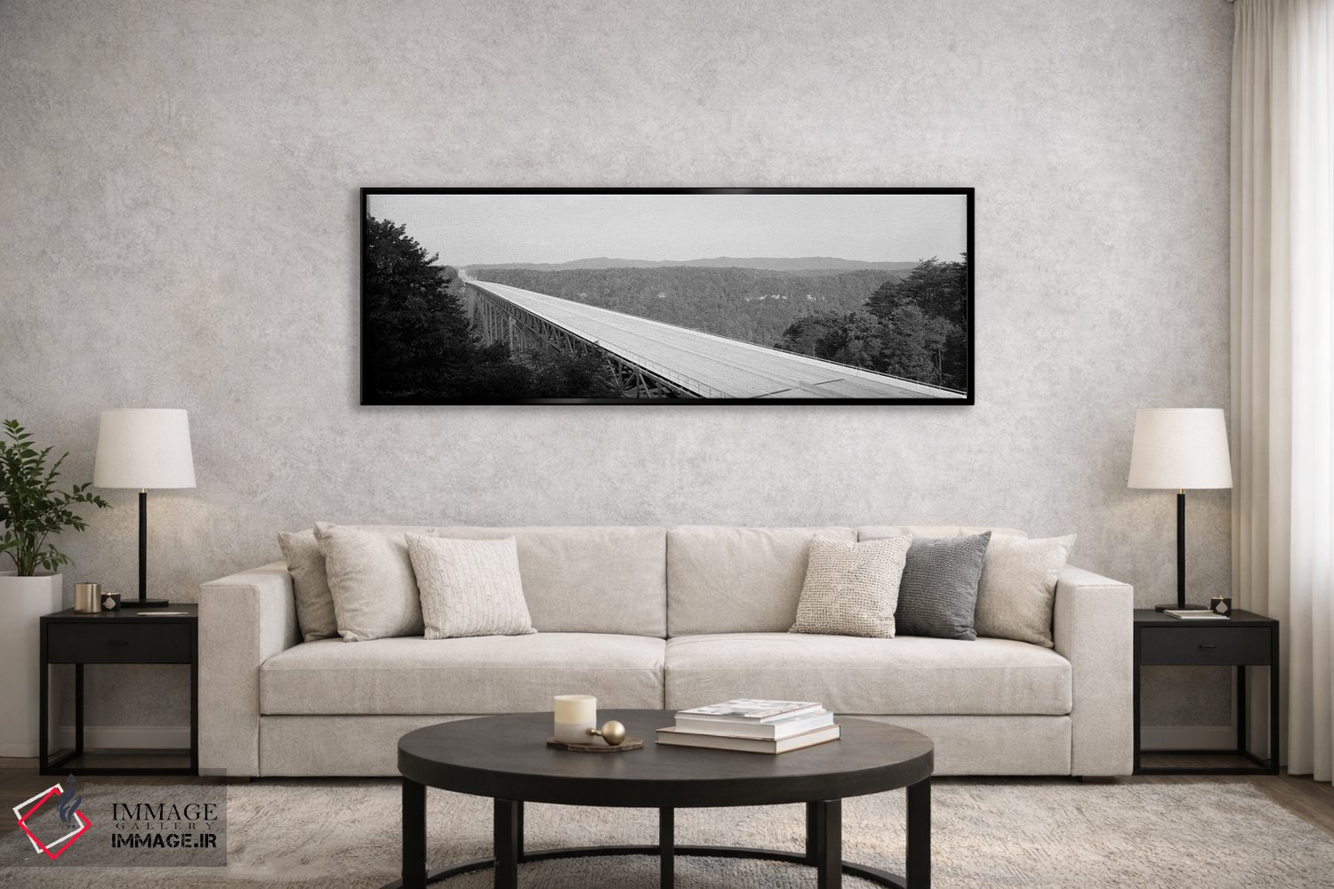 این تابلو اثرِ «پانورامیک ایمجز (استودیو عکاسی عریض)» با حس سیاهوسفید، برای راهروهای شیک و دیوارهای کمجزئیات انتخاب مناسبی است؛ موضوعِ این اثر هم فضا را مرتبتر نشان میدهد.