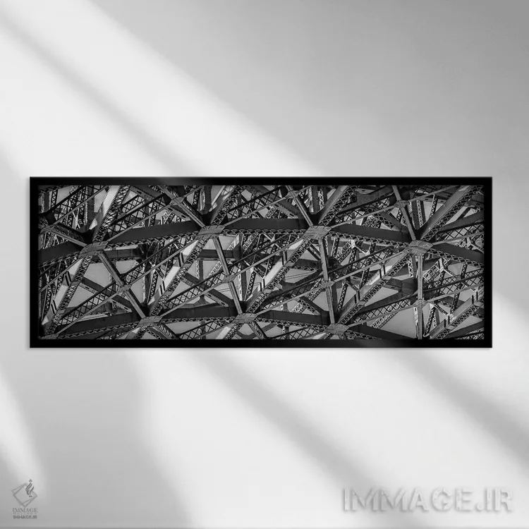 تابلو دکوراتیو "نمای زاویه پایین از جزئیات ساختار پل دروازه طلایی، خلی… اثر پانورامیک ایمجز - نمای قاب‌دار مشکی