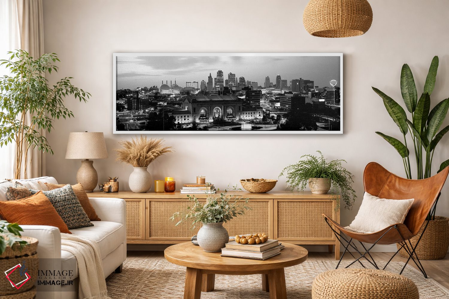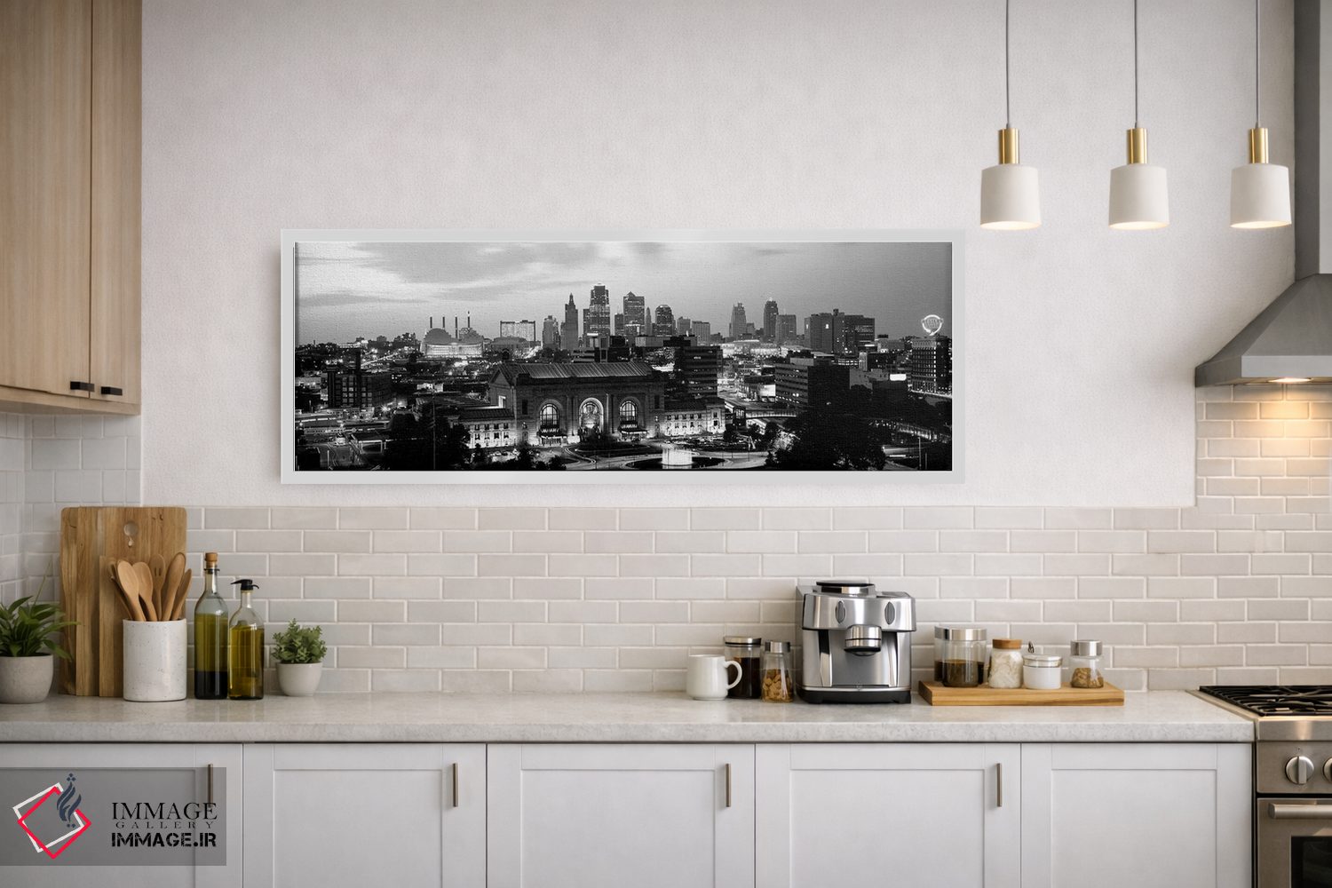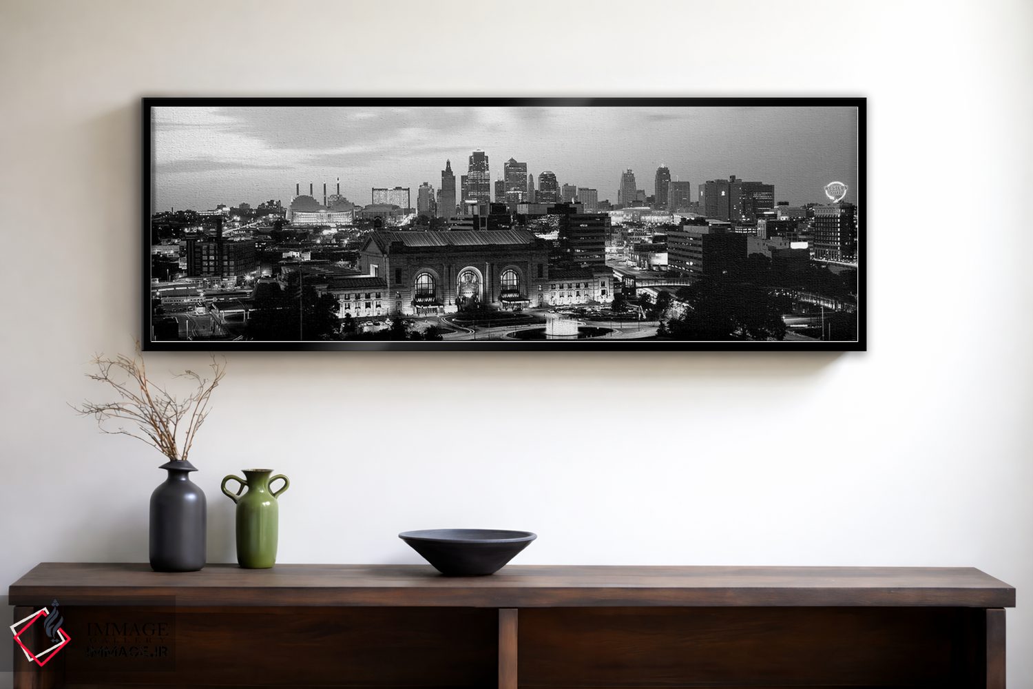 این اثرِ «پانورامیک ایمجز (استودیو عکاسی عریض)» با لحن سیاهوسفید، فضا را شیک و مرتب نشان میدهد؛ مناسبِ پذیراییهای مدرن و دفتر کار.