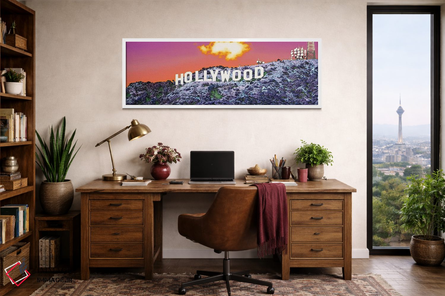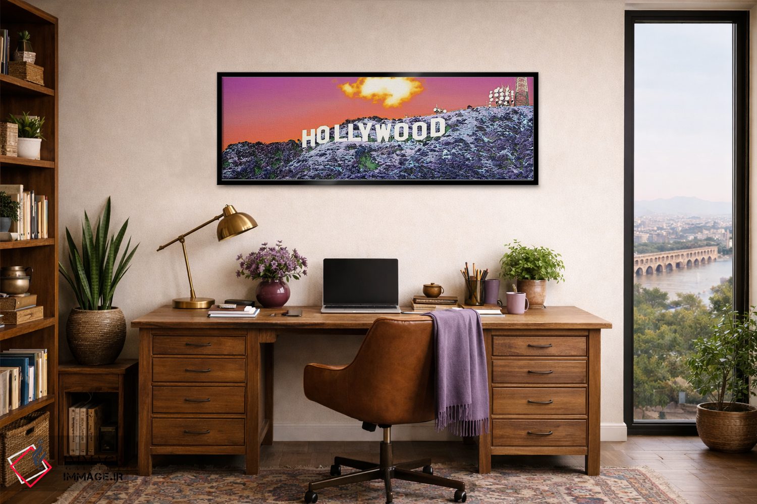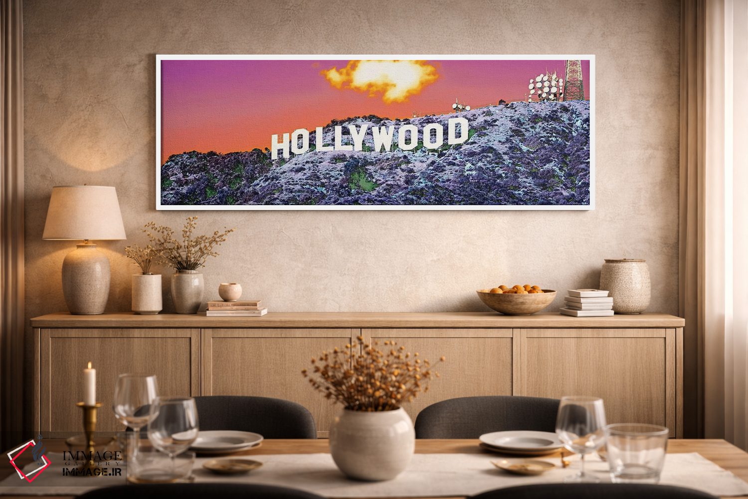 برای خانههایی که به زیباییِ آرام علاقه دارند، «نشان هالیوود، کالیفرنیا، ایالات متحده» اثرِ «پانورامیک ایمجز (استودیو عکاسی عریض)» سلیقهٔ صاحبخانه را بیاغراق نشان میدهد؛ برای دیوار بالای کنسول یا شومینه پیشنهاد میشود. در کنار گیاهان آپارتمانی هم جلوهٔ لطیفی پیدا میکند.