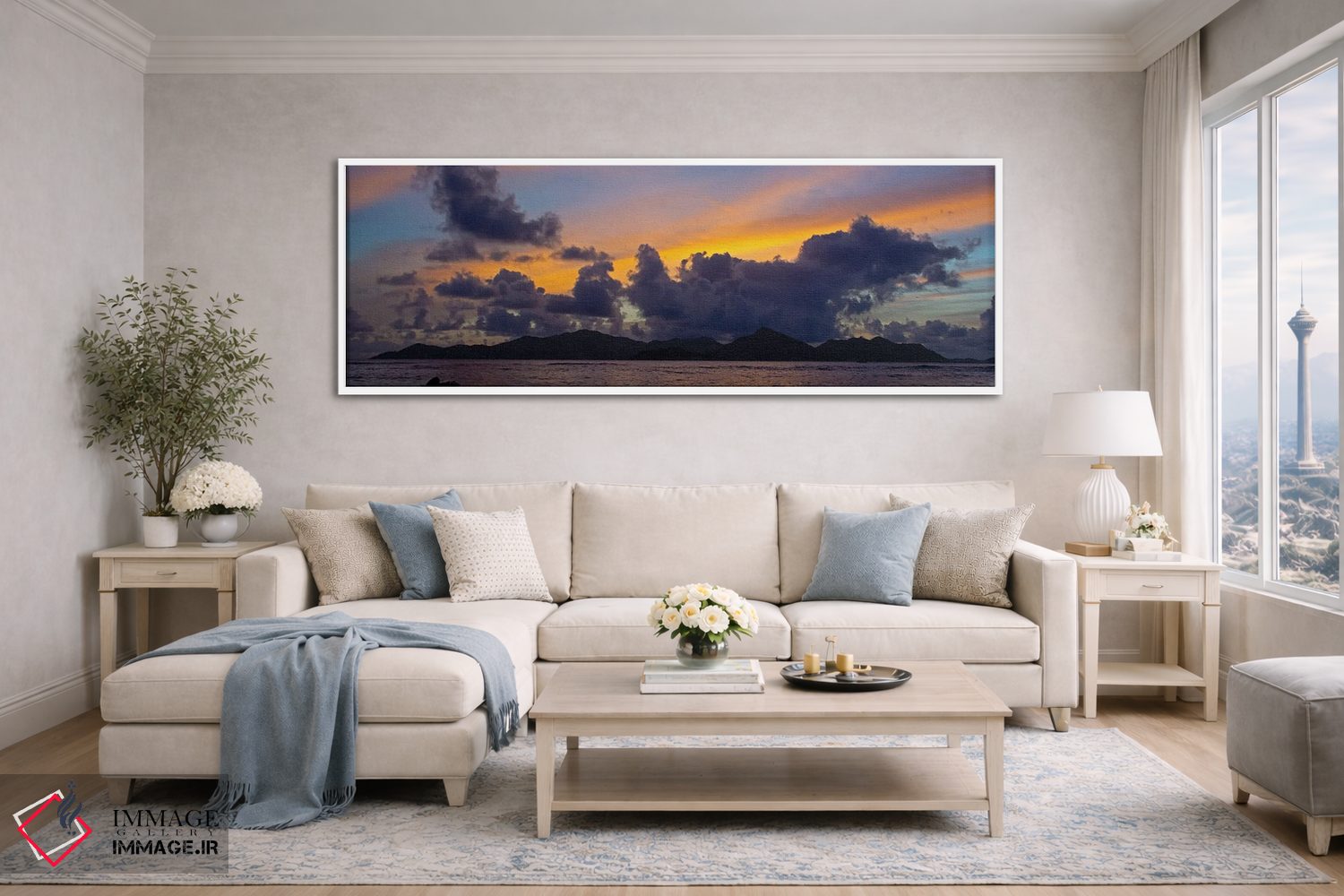 بوم گالری ایماژ نسخهی دکوراتیوِ سطحبالا از یک اثر هنری است؛ روی کنواس سفیدِ یکدست و بدون اسید با فرآیند چاپ حرفهای جیکلی (Giclée) و کنترل دقیق تونها با جوهرهای آرشیویِ حرفهای برای لایههای رنگی خواناتر؛ حس نهایی نزدیکتر به ارائهی گالریوار است؛ نه صرفاً یک تصویر. هر تابلو بهصورت سفارشی روی چهارچوب کشیده میشود و با یراق مناسب آمادهی نصب است. امکان انتخاب قاب از گزینههای سایت وجود دارد و برای سفارشهای ویژه هم میتوانید با ایماژ هماهنگ کنید.