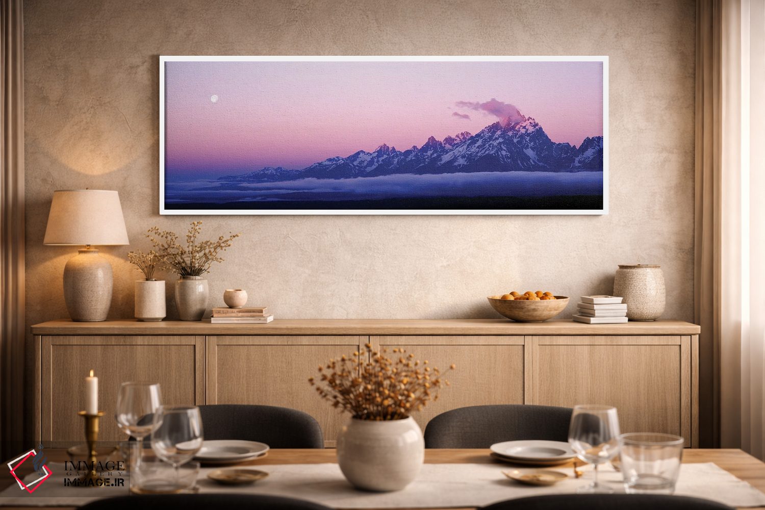 برای فضایی که میخواهید مرتبتر و حرفهایتر دیده شود، «رشتهکوه تتون، پارک ملی گرند تتون، وایومینگ، آمریکا» اثرِ «پانورامیک ایمجز (استودیو عکاسی عریض)» در دکور، مثل یک امضای ظریف عمل میکند؛ برای کنار کتابخانه یا میز کار پیشنهاد میشود. در چیدمانهای مختلف، هماهنگپذیر و انعطافدار است.