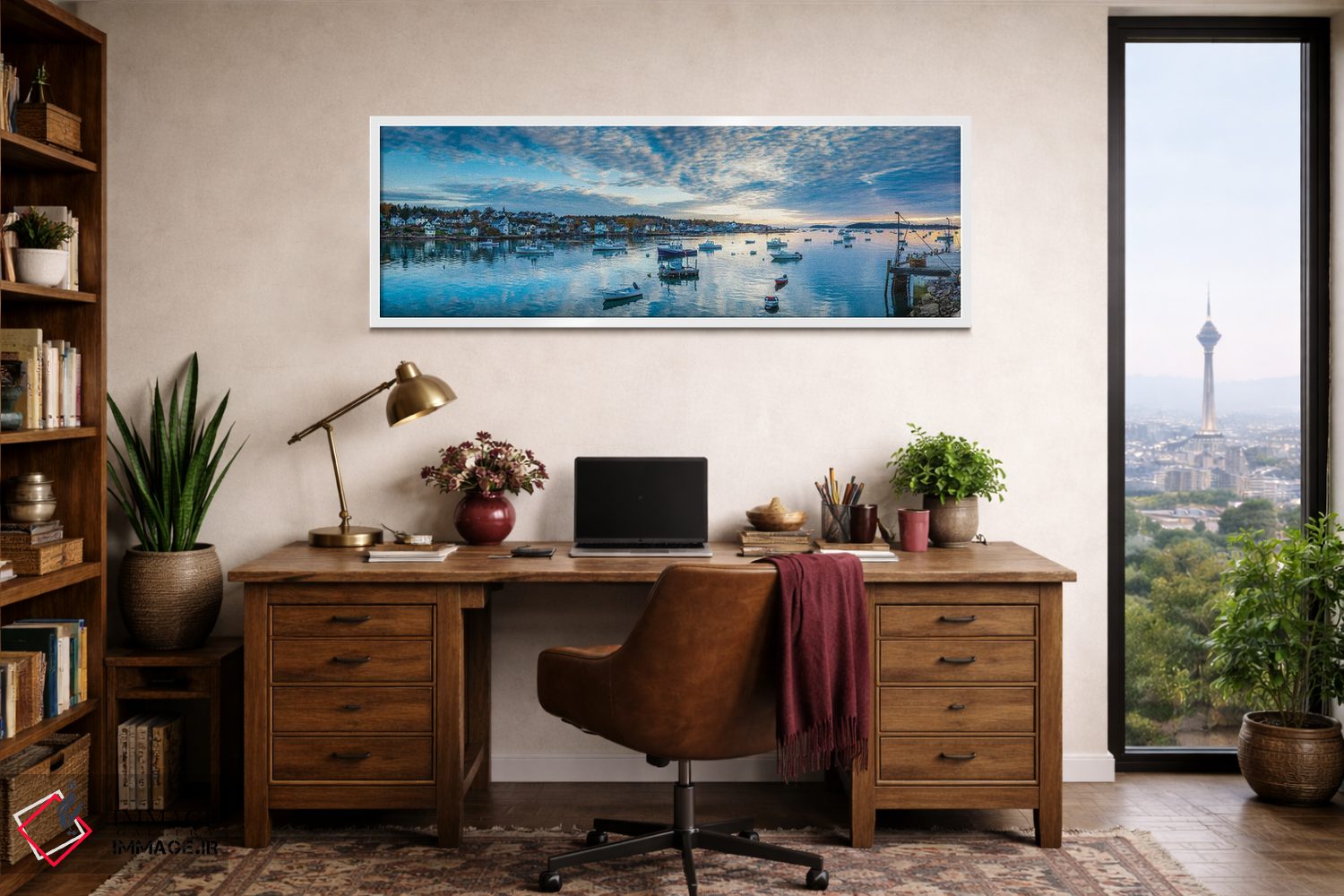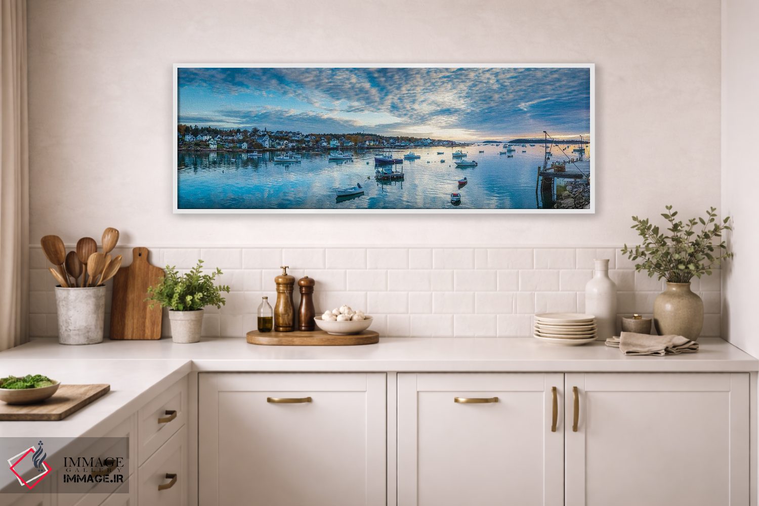 در این اثر، «Maine، Stonington، Stonington Harbor، Dawn"—"ایالات متحده، مین، استونینگتون، بندر استونینگتون، سپیدهدم"» اثرِ «پانورامیک ایمجز (استودیو عکاسی عریض)» حس گالریوار را بیسروصدا وارد خانه میکند؛ برای اتاق کار و گوشهٔ مطالعه پیشنهاد میشود. جزئیاتش نزدیکِ کار هم ارزش نگاه دارد.