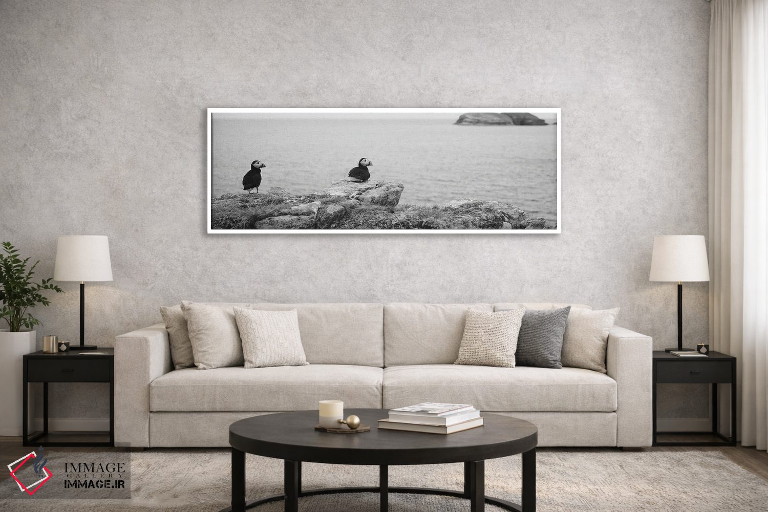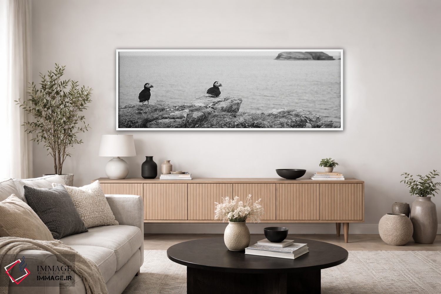 براساس پالت خنثی اثر، قاب مشکی مات (فریم باریک) پیشنهاد اول است و سفید مات (فریم باریک) مکمل. برای سفارشهای پروژهای با ابعاد و قابهای اختصاصی با ایماژ در تماس باشید.
