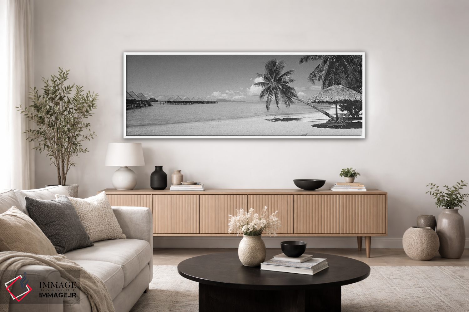 براساس پالت خنثی اثر، قاب مشکی مات (فریم باریک) پیشنهاد اول است و سفید مات (فریم باریک) مکمل. برای سفارشهای پروژهای با ابعاد و قابهای اختصاصی با ایماژ در تماس باشید.