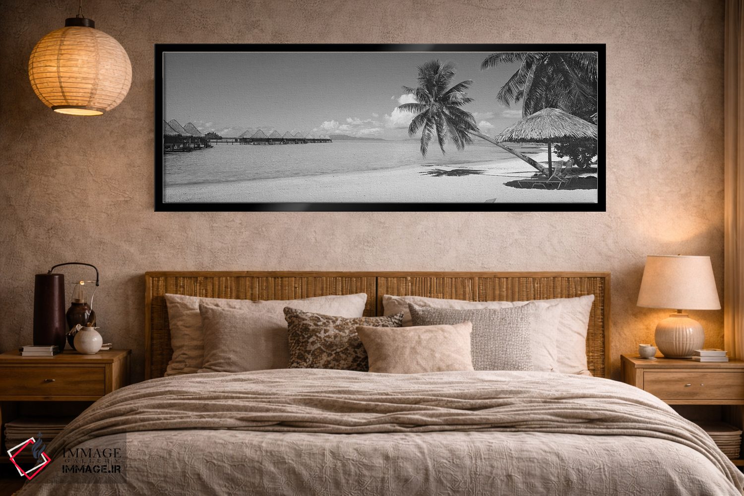 «Moana Beach، Bora Bora، French Polynesia"—"صندلی راحتی زیر یک چتر ساحلی، ساحل موآنا، بورا، پلینزیای فرانسه"» اثرِ «پانورامیک ایمجز (استودیو عکاسی عریض)» در فضای دکور ساحلی، کنار پارچههای روشن و اکسسوریهای طبیعی (حصیر/چوب) عالی هماهنگ میشود.