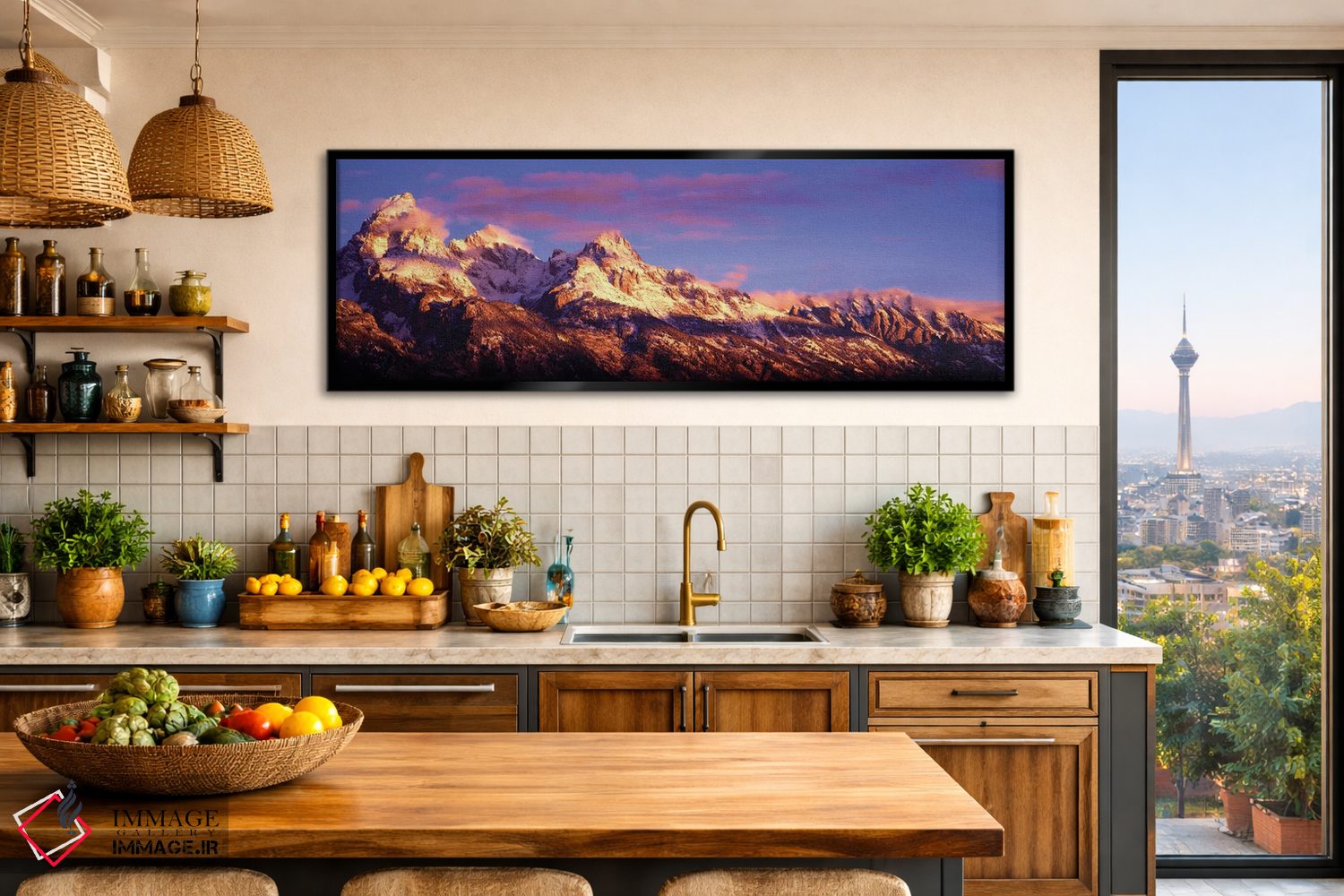 براساس پالت ترکیبی اثر، قاب تیک گرم (چوبی) پیشنهاد اول است و مشکی مات (فریم متوسط) مکمل. برای سفارشهای پروژهای با ابعاد و قابهای اختصاصی با ایماژ در تماس باشید.