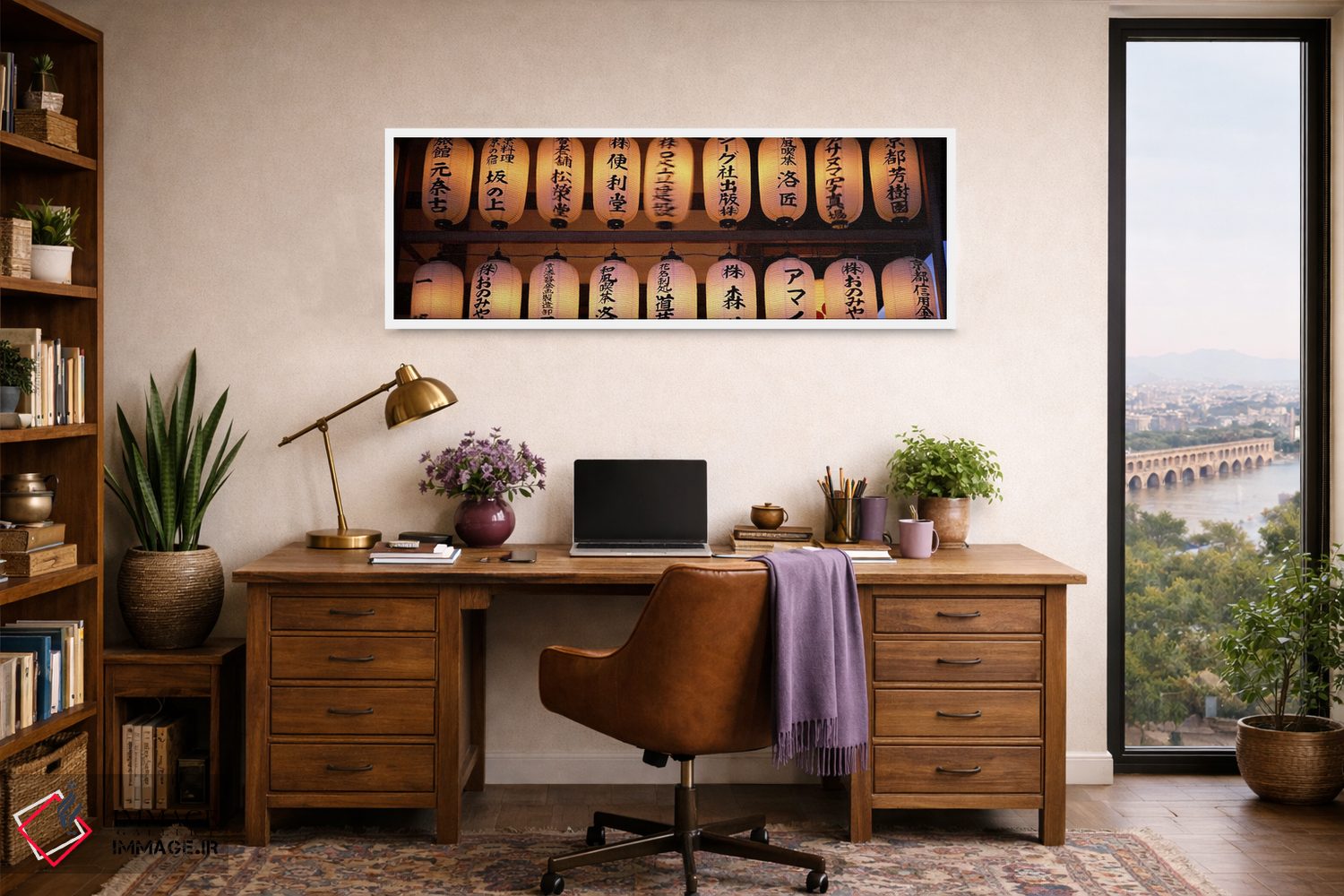 اگر چیدمانتان مینیمال است و فقط یک نقطهی رنگ میخواهید، «Kodai—ji، Higashiyama Ward، Kyoto City، Kyoto Prefecture، Honshu، Kinki Region، Japan، فانوسهای کاغذی روشن در صف، معبد کودای—جی، هیگاشییاما، کیوتو، ژاپن» اثرِ «پانورامیک ایمجز (استودیو عکاسی عریض)» با تم این اثر گزینهی خوشسلیقهای است.