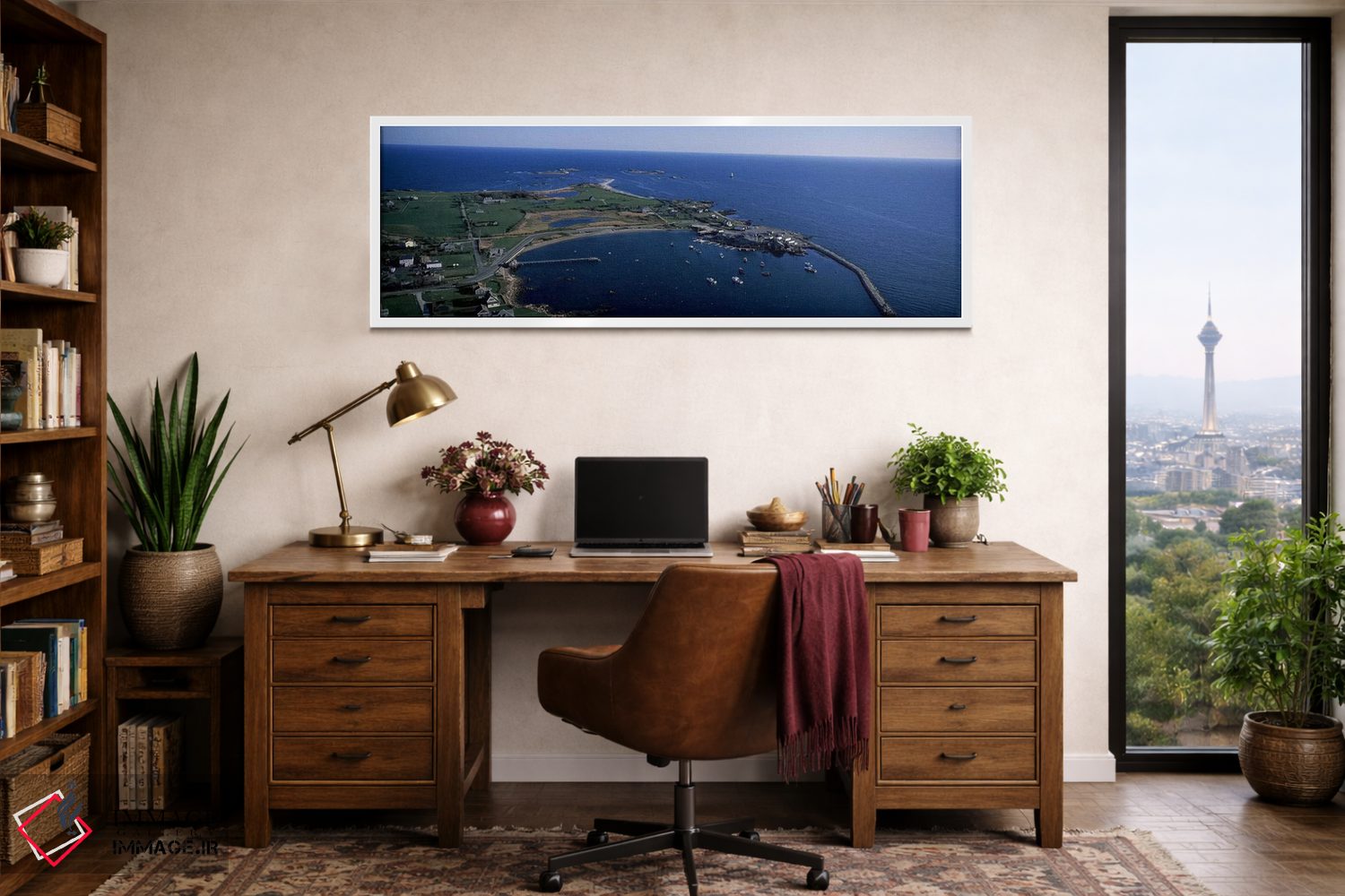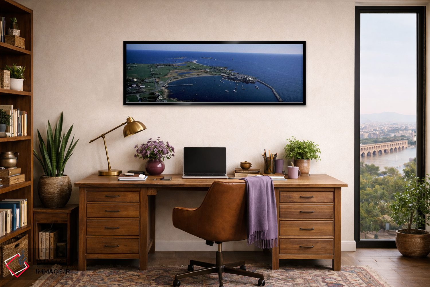 گاهی یک اثر کافیست تا فضا جمعوجور شود؛ «Little Compton، Newport County، Rhode Island، USA، نمای هوایی بندر ساکونت، لیتل کامپتون، نیوپورت، رود آیلند، آمریکا» اثرِ «پانورامیک ایمجز (استودیو عکاسی عریض)» فضا را روشنتر و زندهتر نشان میدهد؛ برای کنار کتابخانه یا میز کار پیشنهاد میشود. با نور گرم یا سرد، خوانایی و وقارش را حفظ میکند.
