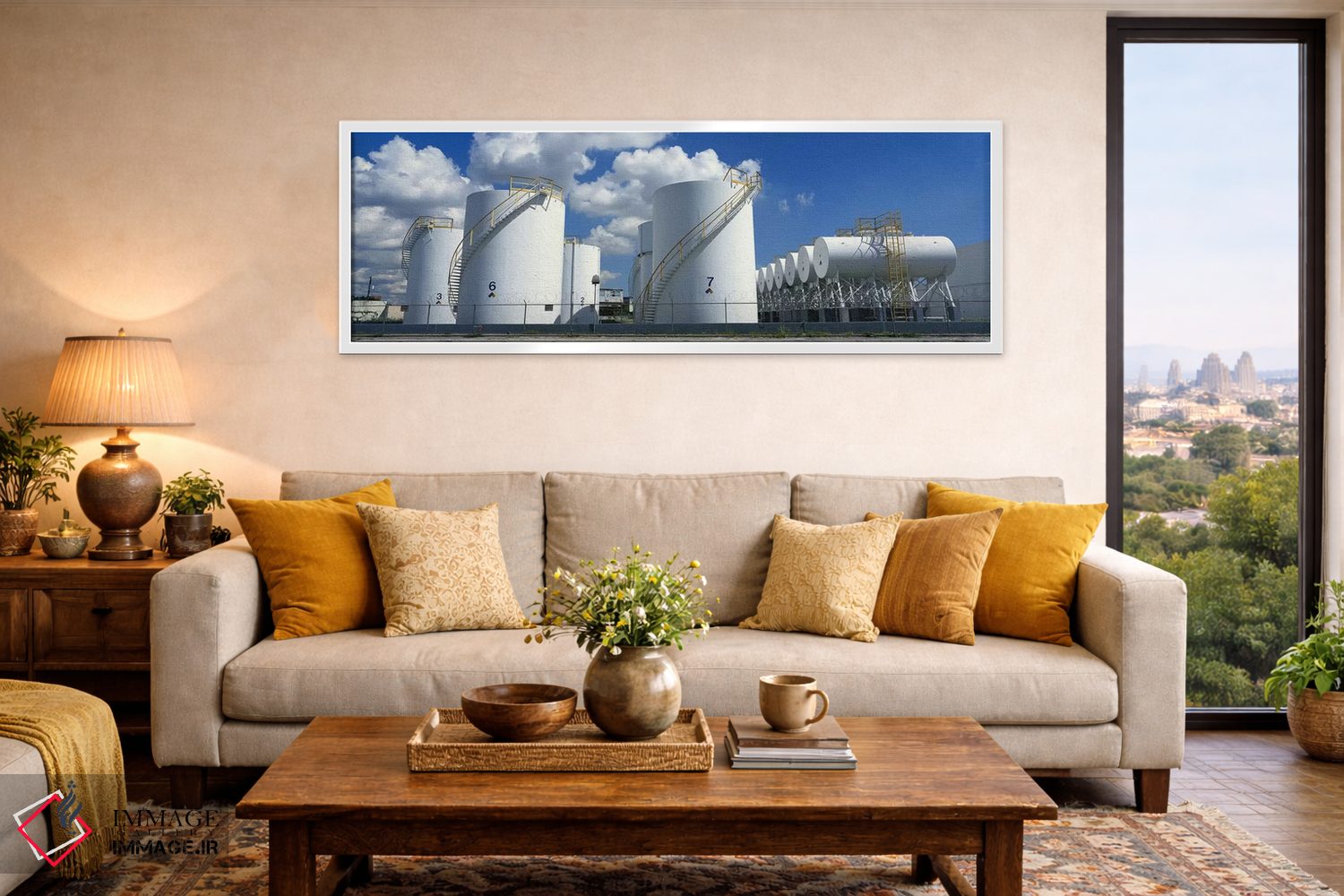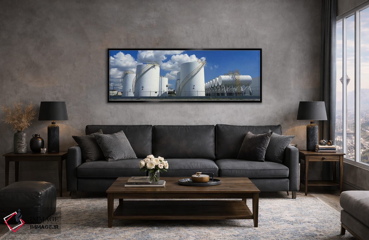 اگر میخواهید دیوار از «پسزمینه» بیرون بیاید، «Miami، Florida، USA #2، مخزنهای ذخیرهسازی در کارخانه، میامی، فلوریدا، آمریکا (۲)» اثرِ «پانورامیک ایمجز (استودیو عکاسی عریض)» سلیقهٔ صاحبخانه را بیاغراق نشان میدهد؛ برای فضاهایی که میخواهید آرام اما جدی دیده شوند پیشنهاد میشود. با مبلمان خنثی، تضاد دلنشینی میسازد.