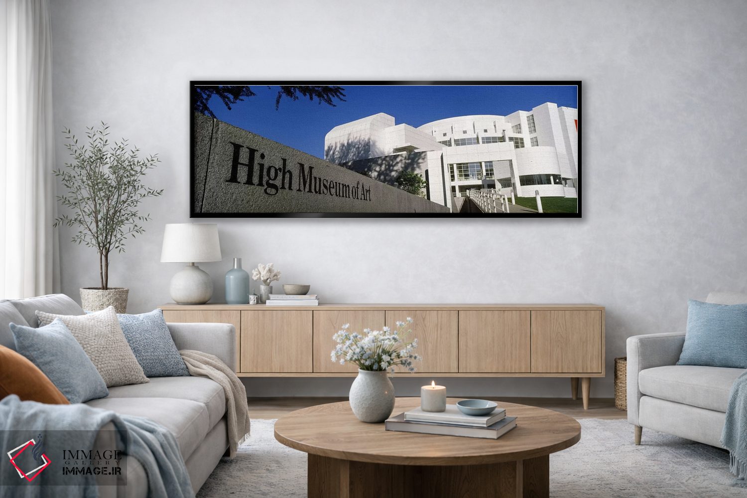 «High Museum of Art، Atlanta، Fulton County، Georgia، USA، نمای خارجی موزه هنرهای زیبا، آتلانتا، شهرستان فالتون، جورجیا، آمریکا» اثرِ «پانورامیک ایمجز (استودیو عکاسی عریض)» برای دکورهای بوهو، اسکانباوراوی یا مینیمال هم جواب میدهد؛ چون عنصر اصلی، لطافت و تعادل است.