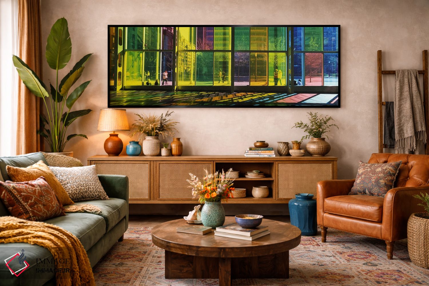 در این اثر، «Palais des congres de Montreal، Villa—Marie، Montreal، Quebec، Canada، نمای شیشهای چند رنگ، مرکز کنفرانس مونترال، ویلا—ماری، مونترال، کبک، کانادا» اثرِ «پانورامیک ایمجز (استودیو عکاسی عریض)» روی دیوار، تمیز و دقیق دیده میشود؛ برای خانههایی که به هماهنگی رنگها اهمیت میدهند پیشنهاد میشود. این تابلو میتواند شروعِ خوبی برای یک دیوار گالری باشد.